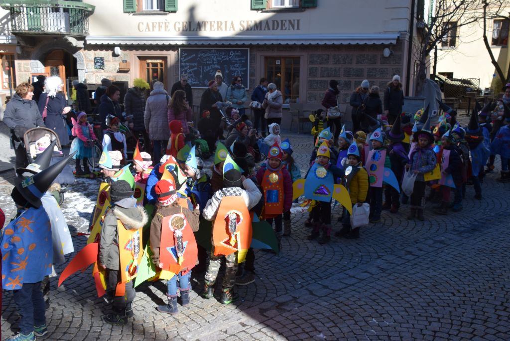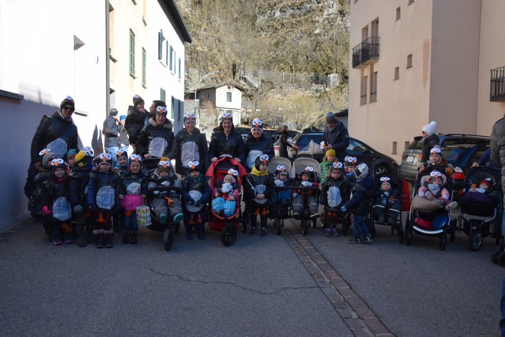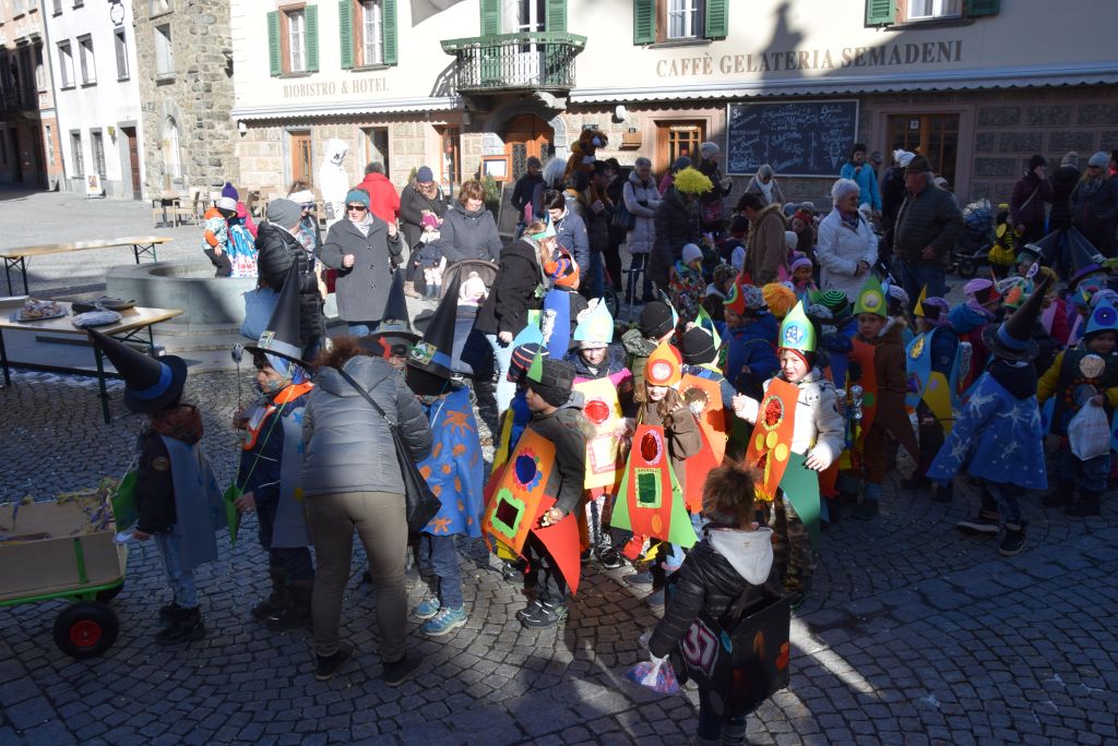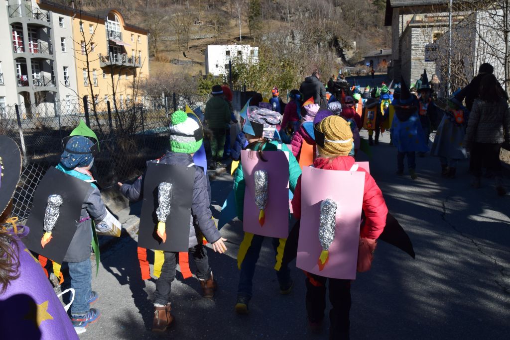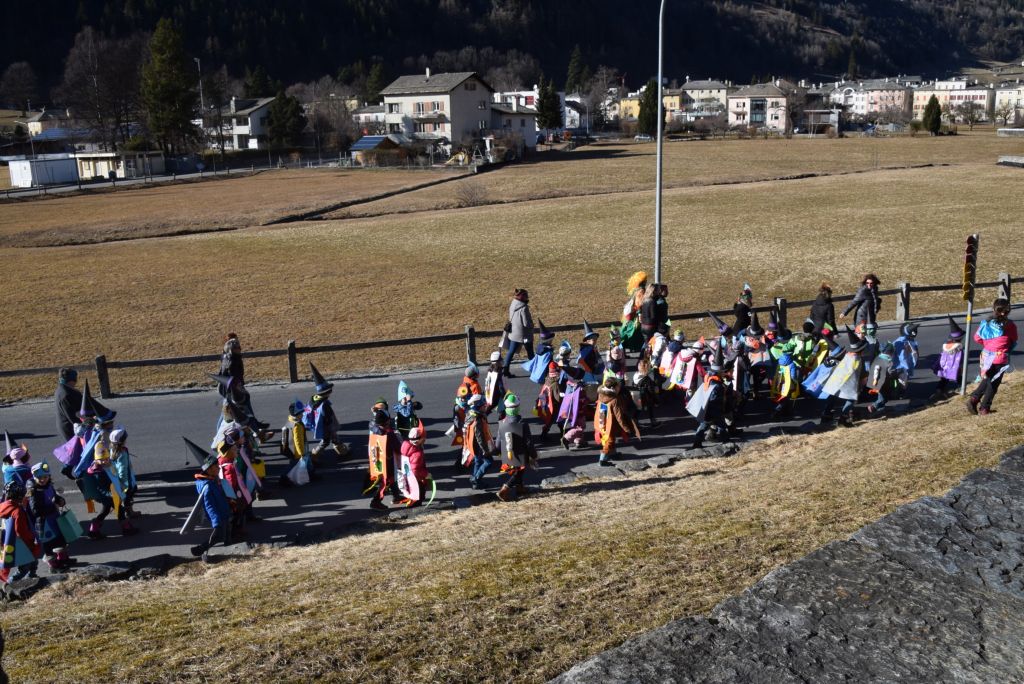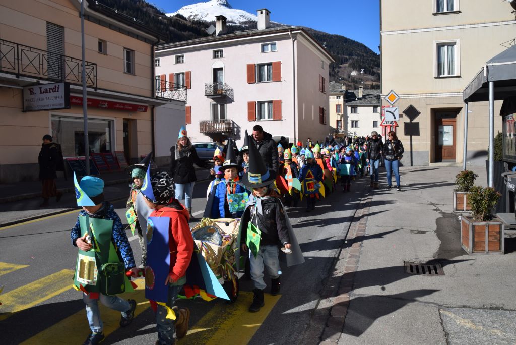 Si è svolta oggi a Poschiavo la tradizionale sfilata di carnevale organizzata dalle scuole dell'infanzia. I bambini della Sede di Poschiavo erano travestiti da razzi, perché stanno trattando il tema luna nei 50 anni d'anniversario del primo uomo sbarcato sulla luna. Invece gli "scölin" della Sede di Le Prese erano travestiti da maghi e streghe di sole e di luna,che sono i simboli delle due sezioni, ma anche perché è il tema trattato quest'anno. Moltissima la gente presente al corteo, i bimbi del Nido Borgo di Poschiavo travestiti da pinguini, avendo libero il venerdì pomeriggio c'erano diversi ragazzi della scuola elementare anche loro rigorosamente travestiti, ma anche diverse mamme che si sono divertite a girare mascherate. A termine corteo è stata offerta in "Plaza" la merenda. Le insegnati della scuola dell'infanzia ringraziano: le mamme che hanno preparato la merenda, tutti i partecipanti, e in modo particolare Andrea Rera dell'Hotel Albrici per la disponibilità e la usa gentilezza.
