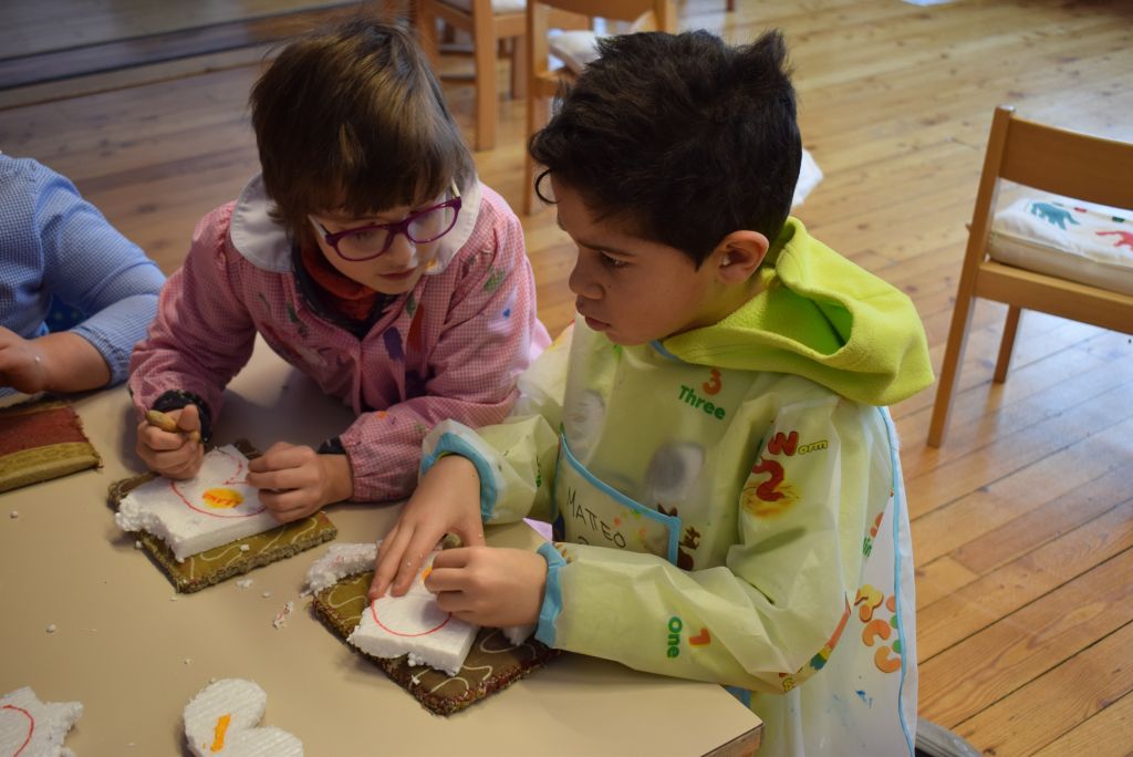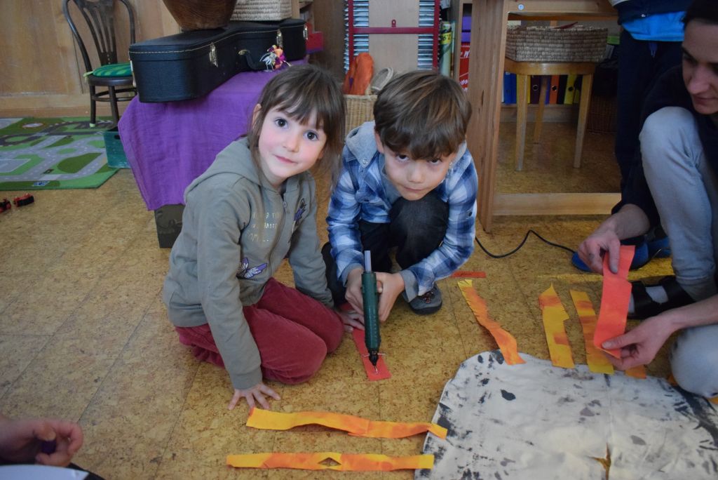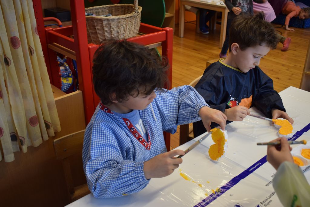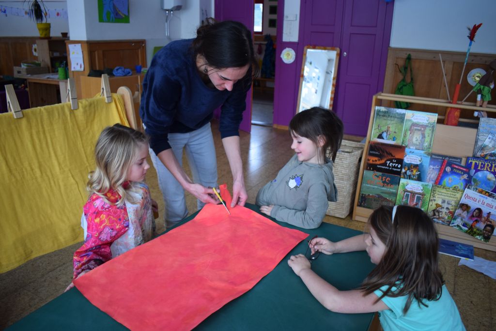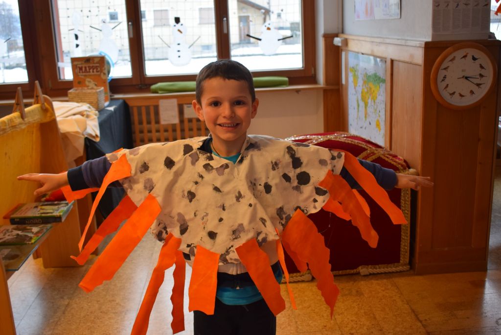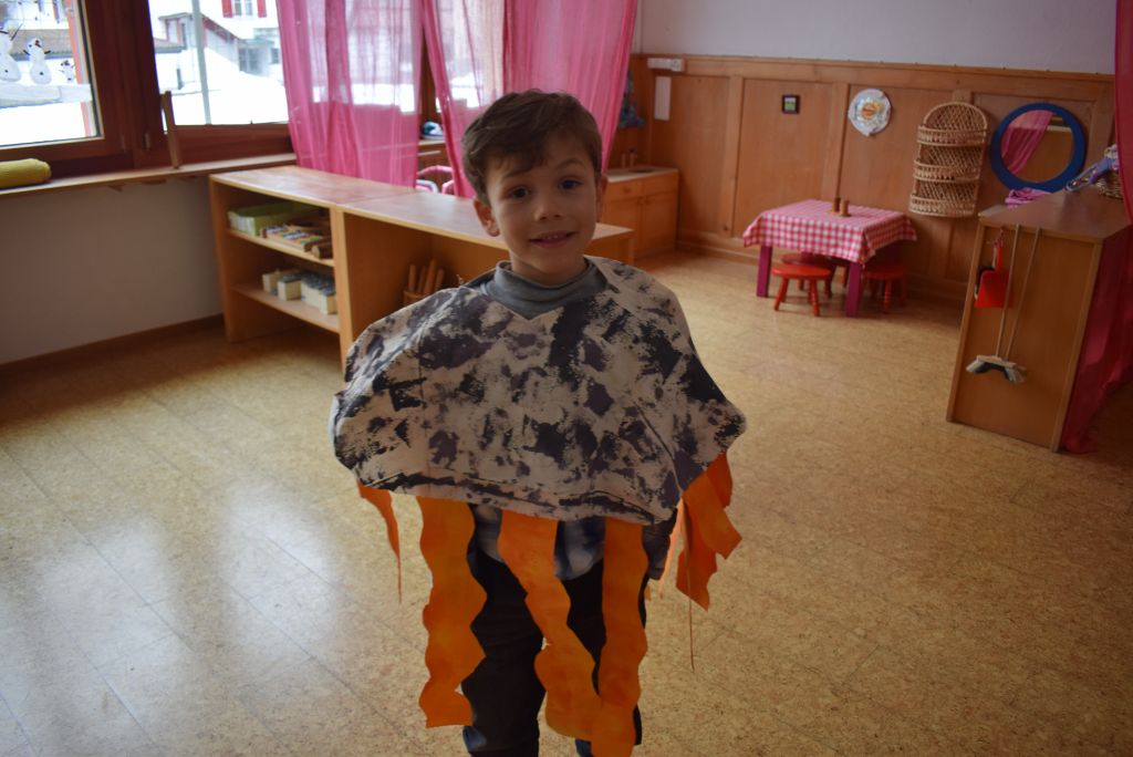 La realizzazione dei costumi di carnevale è sempre un momento molto bello ed unico, nonché impegnativo sia per gli scölin che per le insegnanti. Venerdì pomeriggio 26 gennaio 2018 ho potuto assistere alla realizzazione dei costumi di carnevale dei bambini della scuola dell'infanzia della Sede di Le Prese, Sezione Luna e Sole. Per questo ringrazio le insegnanti Anna e Silvana per aver potuto essere in mezzo ai bambini e guardarli lavorare! Il tema annuale degli scölin dell'insegnante Silvana riguarda le emozioni. Attraverso semplici mostri (pupazzi di stoffa) i bambini sono entrati nel mondo delle emozioni e hanno imparato a conoscere la paura (mostro nero), la rabbia (mostro rosso), la calma (mostro verde) e la tristezza (mostro blu). La loro casa è un grande cuore di cartone! Eh sì, perché le nostre emozioni vengono dal cuore. In questo periodo il mostro della tristezza, che è un'appassionato di strumenti, ha portato a scölina la musica del "carnevale degli animali" così i bambini si travestiranno da leoni.