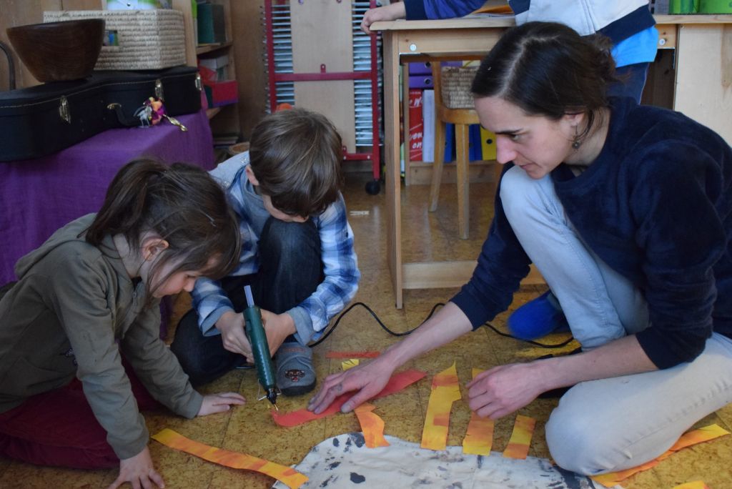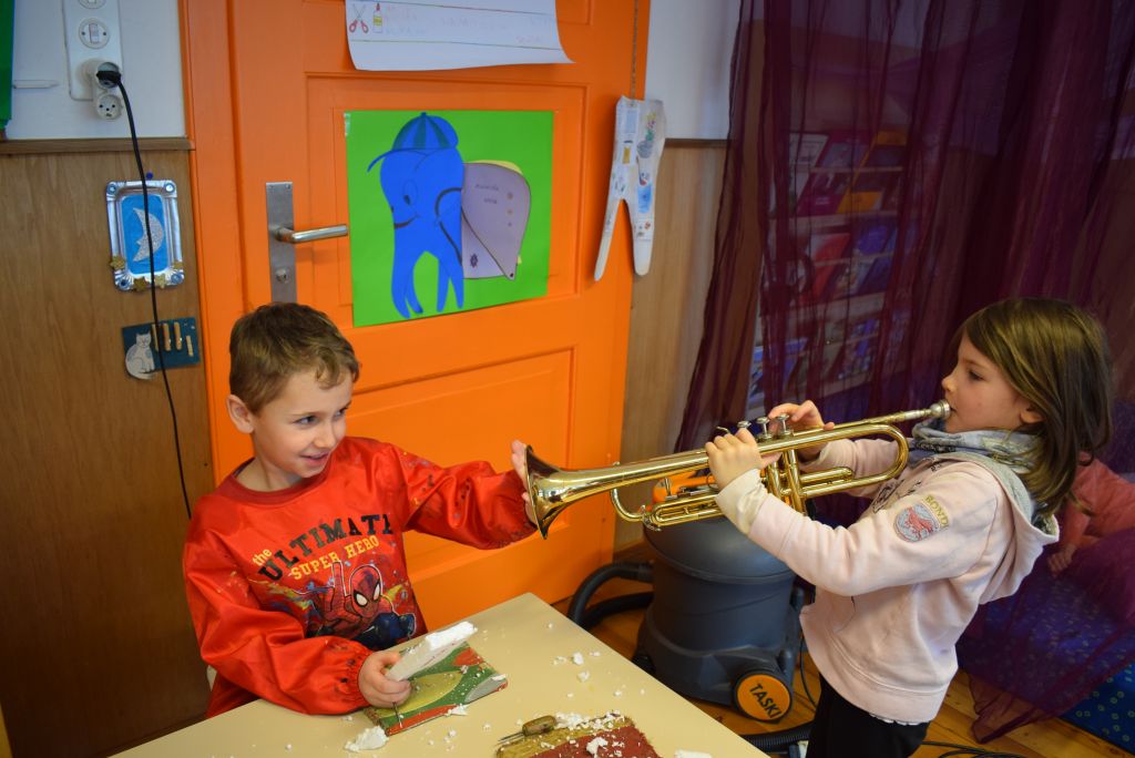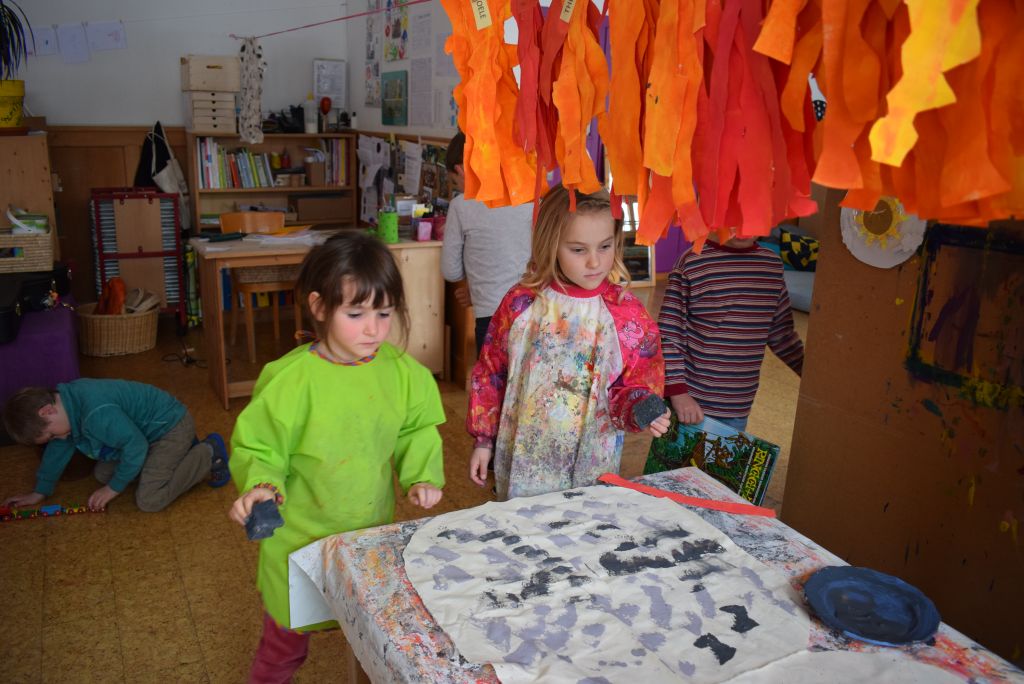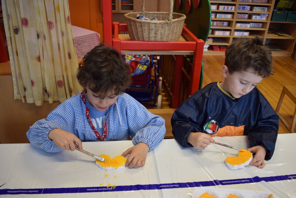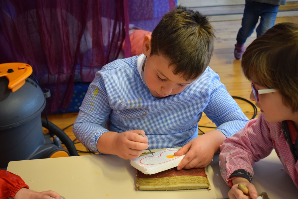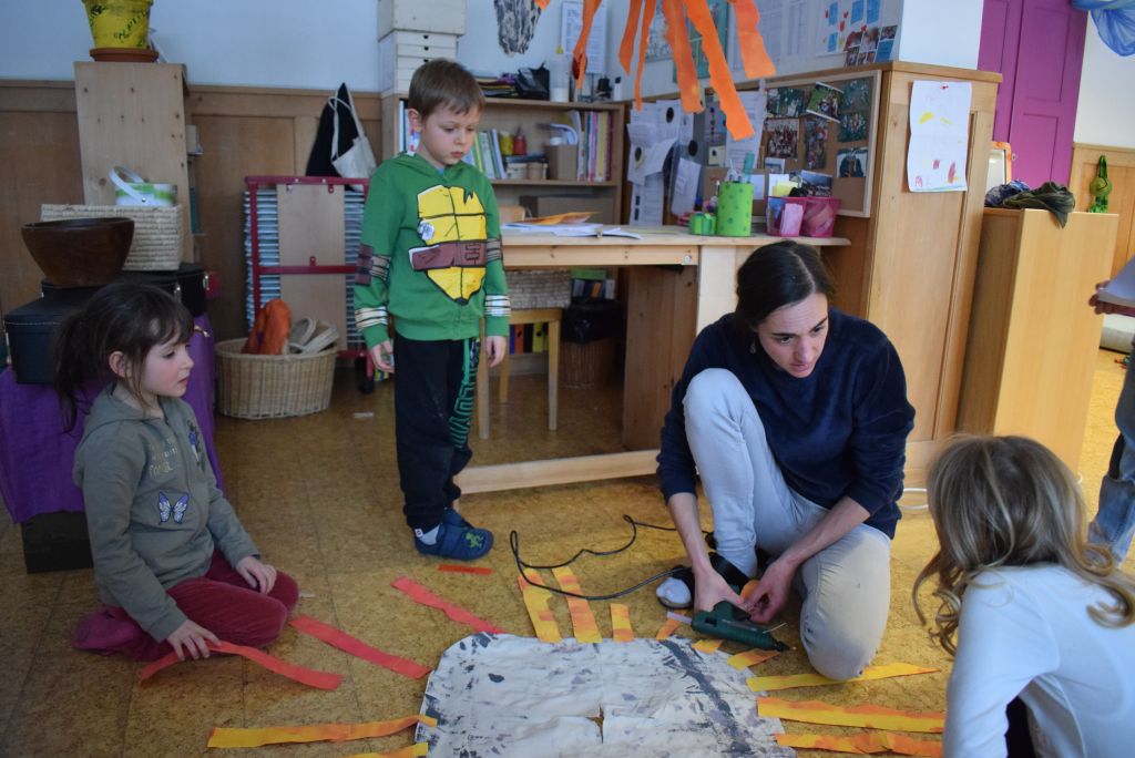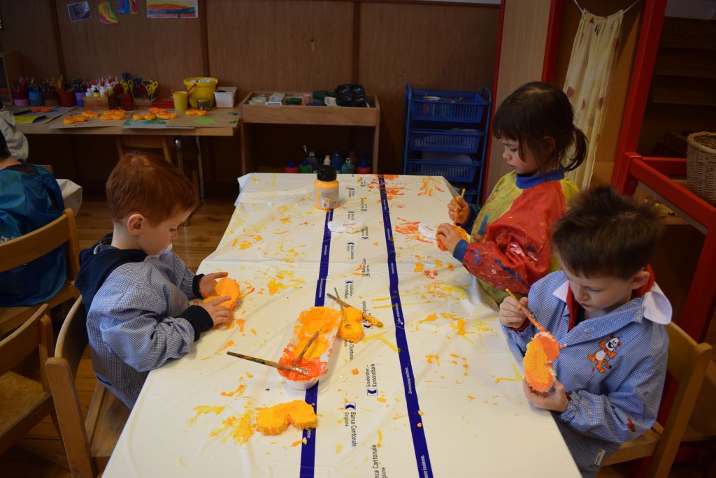 La realizzazione dei costumi di carnevale è sempre un momento molto bello ed unico, nonché impegnativo sia per gli scölin che per le insegnanti. Venerdì pomeriggio 26 gennaio 2018 ho potuto assistere alla realizzazione dei costumi di carnevale dei bambini della scuola dell'infanzia della Sede di Le Prese, Sezione Luna e Sole. Per questo ringrazio le insegnanti Anna e Silvana per aver potuto essere in mezzo ai bambini e guardarli lavorare! Il tema annuale degli scölin dell'insegnante Silvana riguarda le emozioni. Attraverso semplici mostri (pupazzi di stoffa) i bambini sono entrati nel mondo delle emozioni e hanno imparato a conoscere la paura (mostro nero), la rabbia (mostro rosso), la calma (mostro verde) e la tristezza (mostro blu). La loro casa è un grande cuore di cartone! Eh sì, perché le nostre emozioni vengono dal cuore. In questo periodo il mostro della tristezza, che è un'appassionato di strumenti, ha portato a scölina la musica del "carnevale degli animali" così i bambini si travestiranno da leoni.