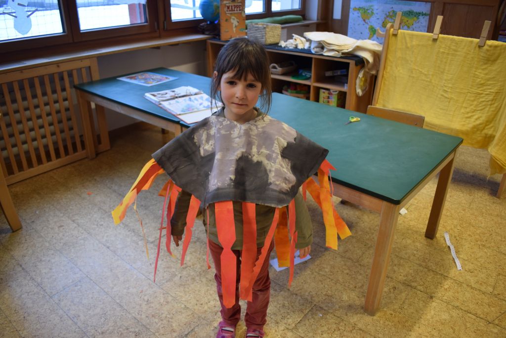 Gli scölin dell'insegnante Anna stanno trattando come tema annuale in viaggio per i paesi del mondo. Grazie a due amici immaginari, Findus il gatto e Petterson il contadino, sono giunti in Islanda, paese noto per i suoi numerosi vulcani. Quindi hanno pensato di realizzare i loro costumi a forma di vulcano.