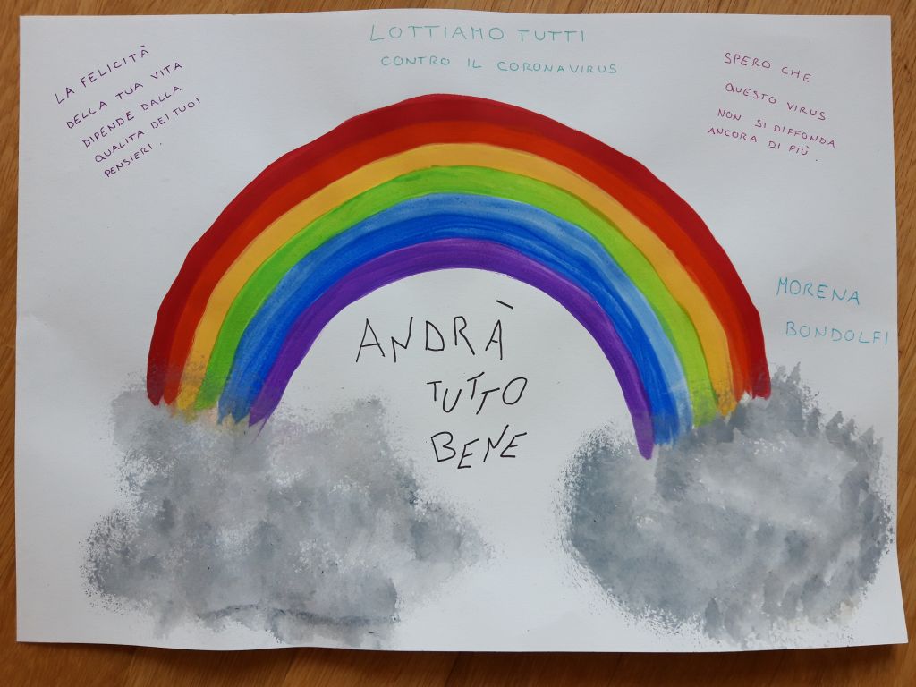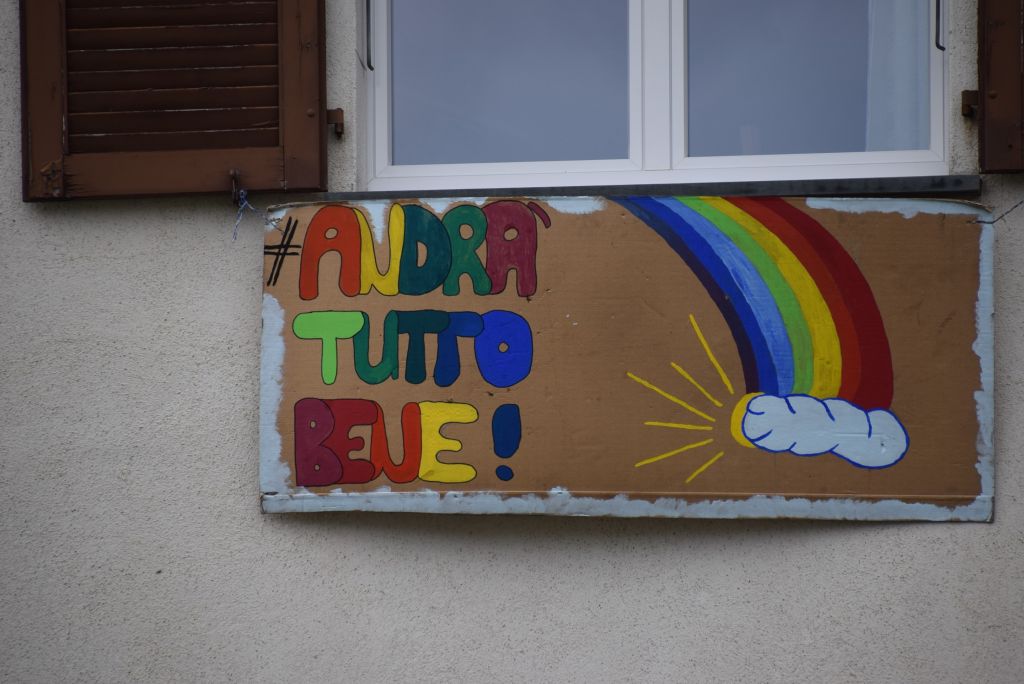 In Italia è rimbalzato sui social l'hashtag #andràtuttobene. Lo slogan contro il coronavirus è stato al centro anche dei disegni, a tecnica libera, realizzati dagli scolari delle elementari del comune di Poschiavo, su carta, cartone, vetro e lenzuola. Questi ultimi sono stati appesi ai balconi delle case. Questa bella iniziativa è stata copiata anche da diverse mamme, che hanno deciso di realizzarla con l'aiuto dei loro figli piccoli. Anche i bambini della scuola dell'infanzia del Comune di Poschiavo hanno realizzato una simpatica nuvola, "la nuvoletta del pensiero positivo", con le tre parole "andrà tutto bene". Senza dubbio un modo originale e colorato per rispondere, con ottimismo, alla paura e alla psicosi da contagio di coronavirus.