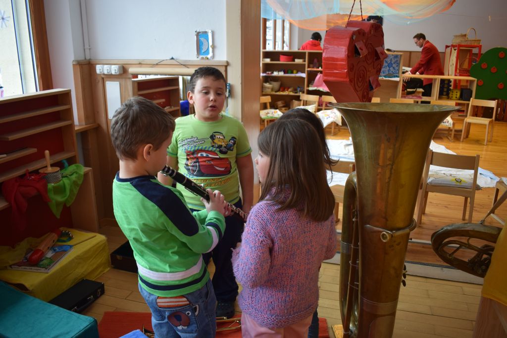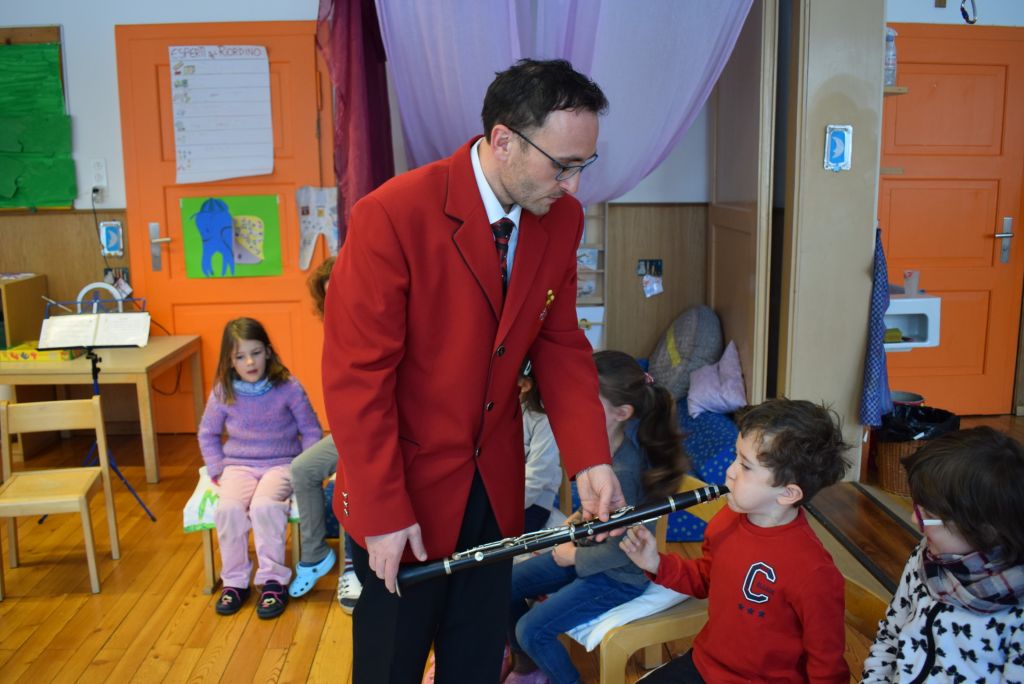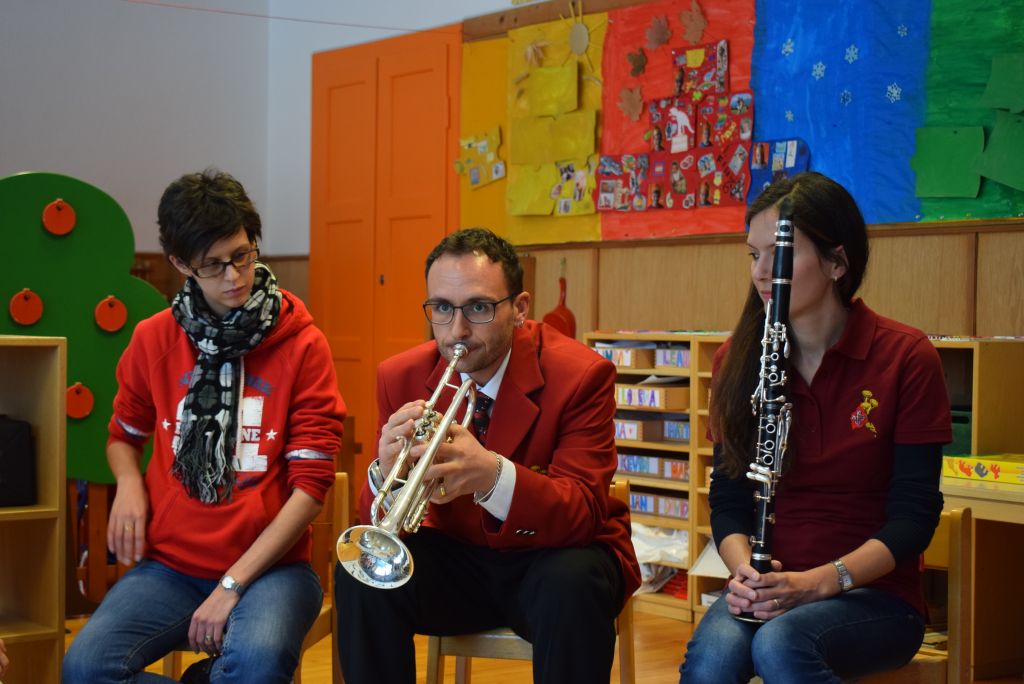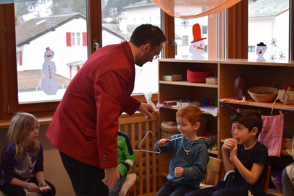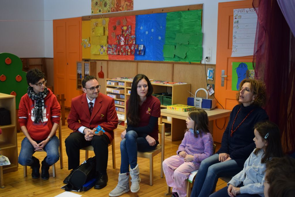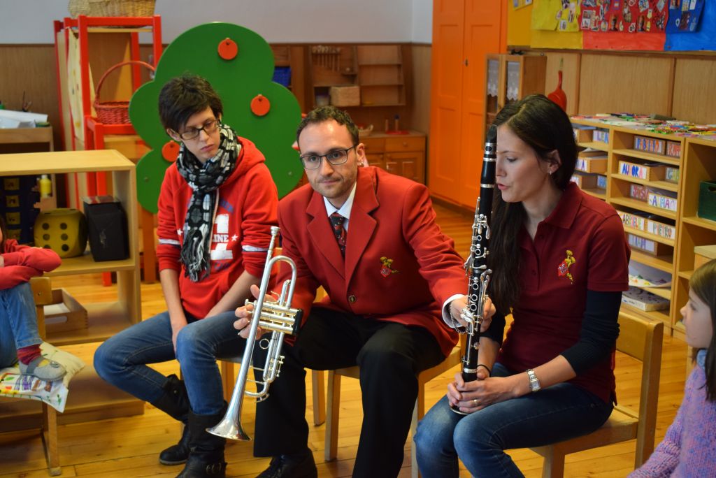 Tutti noi, grandi e piccini proviamo delle emozioni! La paura, la rabbia, la calma, la tristezza e la gioia sono dei sentimenti che si scatenano spesso dentro di noi e che per tanti motivi non sempre riusciamo a tenerli sotto controllo. I bambini della "Si di Le Prese" (sezione Luna dell’insegnante Silvana) dall'inizio dell’anno scolastico 2017/2018 grazie a dei piccoli mostri (pupazzi di stoffa colorati), hanno imparato a conoscere una alla volta le emozioni che sono racchiuse dentro il nostro cuore. Dopo le vacanze di Natale il mostro blu della tristezza è arrivato in piscina su una barchetta perché lui ha una certa affinità con l’acqua, ama il mare e la pioggia. Quando si sente tanto solo e triste, la musica riesce a farlo stare meglio; è un grande appassionato di strumenti musicali. In occasione del periodo di carnevale ha fatto ascoltare agli scölin “Il carnevale degli animali”, per questo motivo i bambini hanno deciso di travestirsi per il corteo di carnevale da leoni. Il presidente della Filarmonica Comunale Poschiavo Michele Zanetti, ha prestato per un periodo alcuni strumenti musicali (che non venivano più usati ed erano riposti in magazzino): una tromba, un basso tuba, un clarinetto e un euphonium (bel suono). Immaginatevi che gioia per gli scölin poter provare a suonare quegli strumenti! Ma la sorpresa più grande che l’insegnate Silvana ha riservato ai sui scölin, è stata la visita a sorpresa, venerdì pomeriggio 9 gennaio, di tre esperti d’eccezione in fatto di strumenti: il presidente della Filarmonica Comunale Poschiavo Michele Zanetti, la vice presidente Linda Cortesi-Lanfranchi e l’attuaria Laura Brändli-Costa.