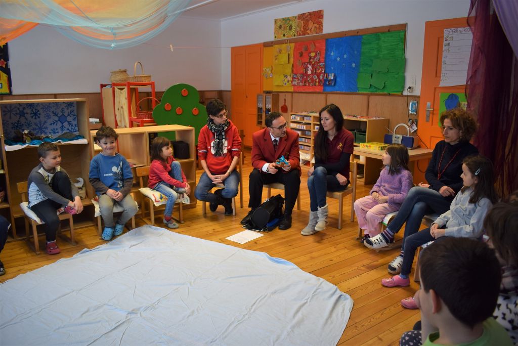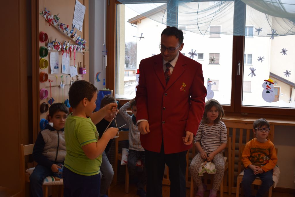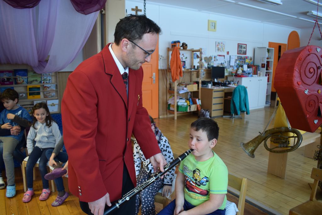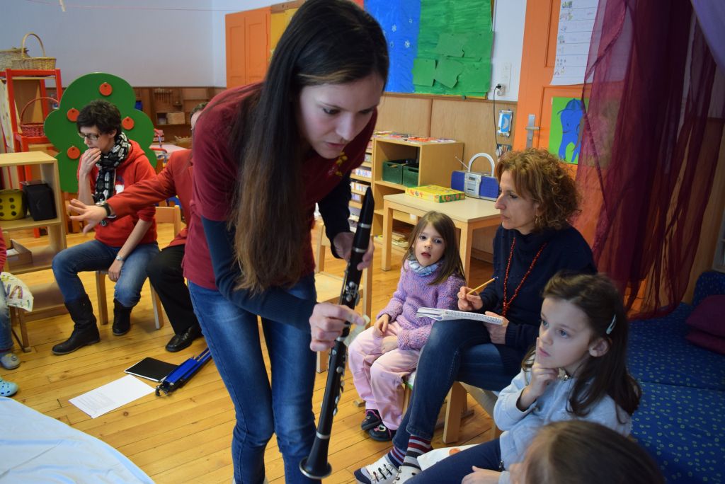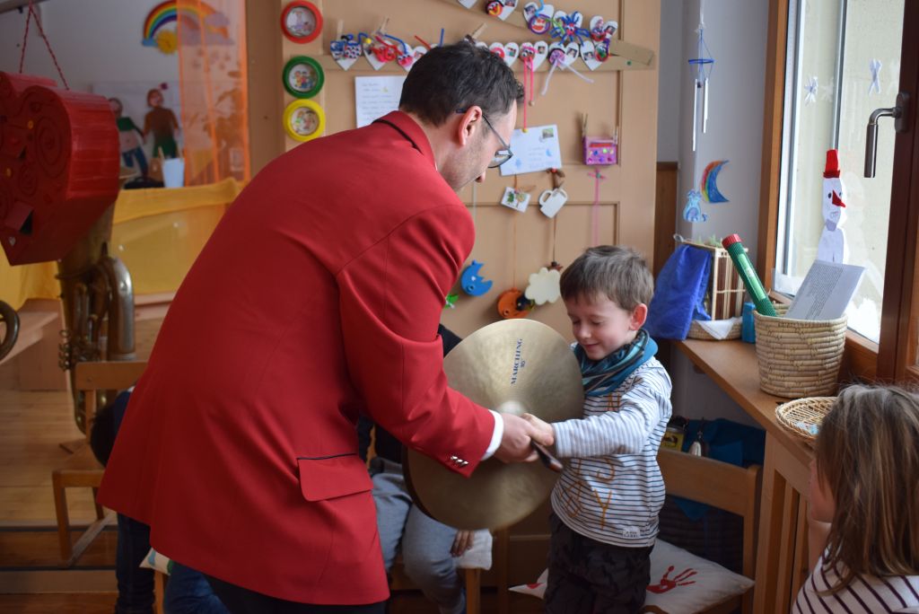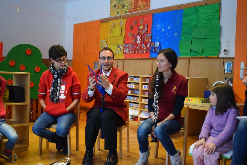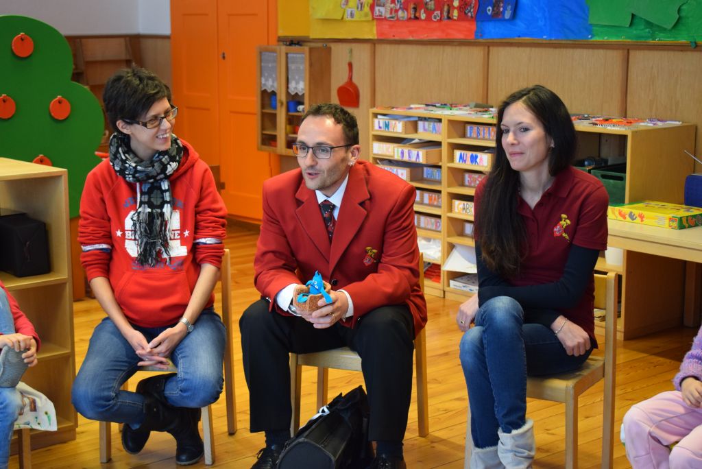Tutti noi, grandi e piccini proviamo delle emozioni! La paura, la rabbia, la calma, la tristezza e la gioia sono dei sentimenti che si scatenano spesso dentro di noi e che per tanti motivi non sempre riusciamo a tenerli sotto controllo. I bambini della "Si di Le Prese" (sezione Luna dell’insegnante Silvana) dall'inizio dell’anno scolastico 2017/2018 grazie a dei piccoli mostri (pupazzi di stoffa colorati), hanno imparato a conoscere una alla volta le emozioni che sono racchiuse dentro il nostro cuore. Dopo le vacanze di Natale il mostro blu della tristezza è arrivato in piscina su una barchetta perché lui ha una certa affinità con l’acqua, ama il mare e la pioggia. Quando si sente tanto solo e triste, la musica riesce a farlo stare meglio; è un grande appassionato di strumenti musicali. In occasione del periodo di carnevale ha fatto ascoltare agli scölin “Il carnevale degli animali”, per questo motivo i bambini hanno deciso di travestirsi per il corteo di carnevale da leoni. Il presidente della Filarmonica Comunale Poschiavo Michele Zanetti, ha prestato per un periodo alcuni strumenti musicali (che non venivano più usati ed erano riposti in magazzino): una tromba, un basso tuba, un clarinetto e un euphonium (bel suono). Immaginatevi che gioia per gli scölin poter provare a suonare quegli strumenti! Ma la sorpresa più grande che l’insegnate Silvana ha riservato ai sui scölin, è stata la visita a sorpresa, venerdì pomeriggio 9 gennaio, di tre esperti d’eccezione in fatto di strumenti: il presidente della Filarmonica Comunale Poschiavo Michele Zanetti, la vice presidente Linda Cortesi-Lanfranchi e l’attuaria Laura Brändli-Costa.