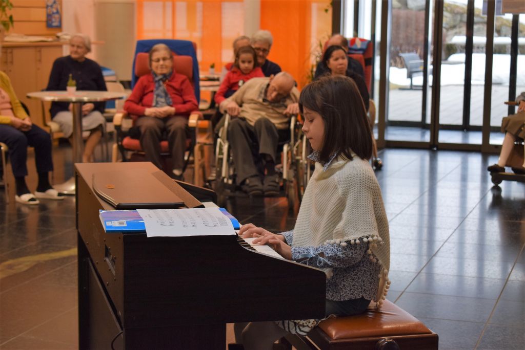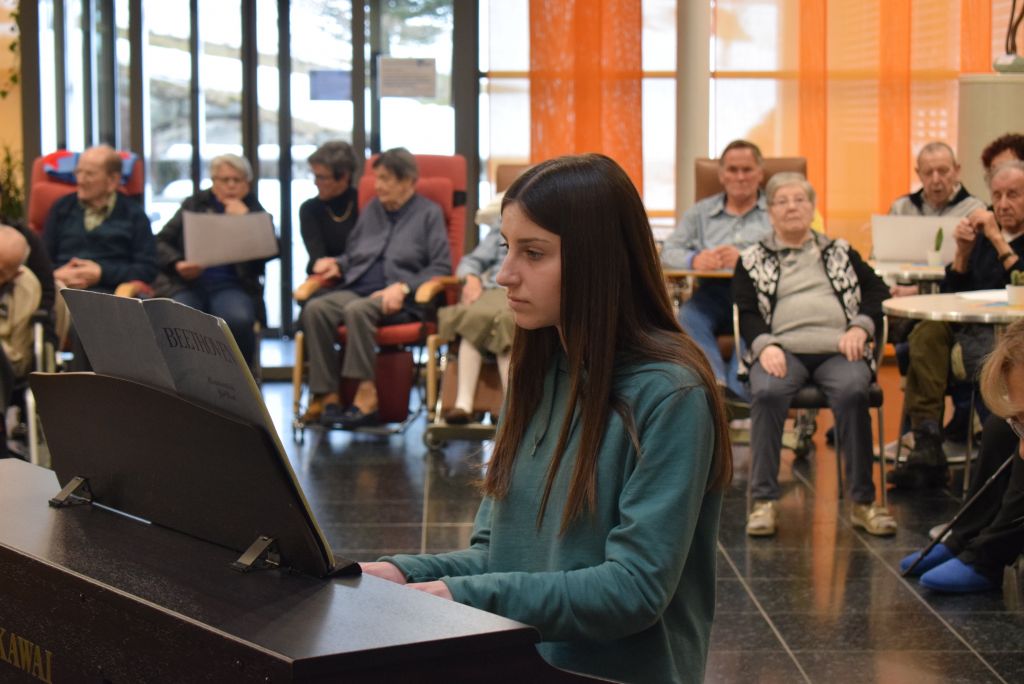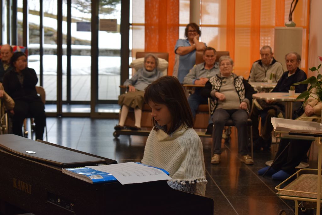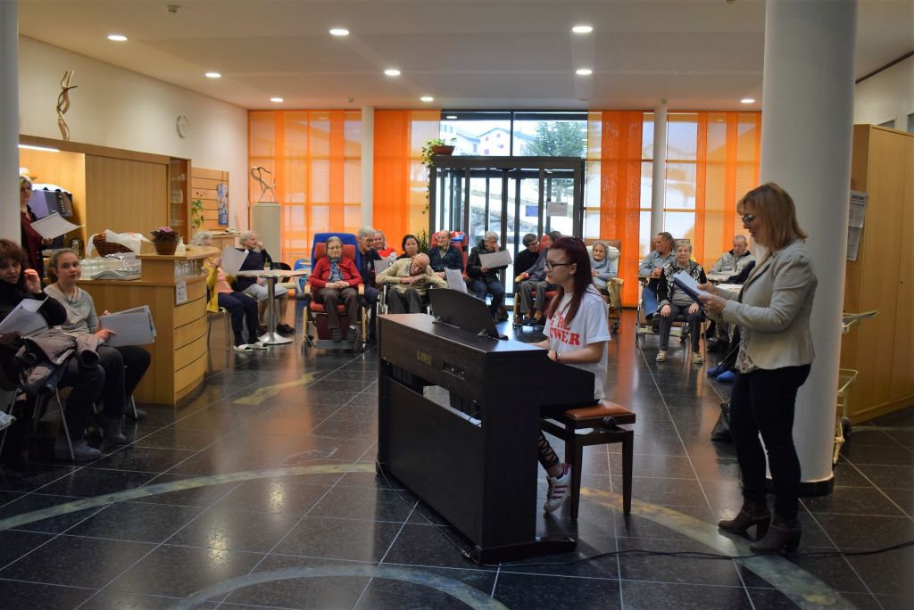 Sabato pomeriggio 17 febbraio 2018, otto allievi della Scuola Musica Brusio/gruppo pianoforte accompagnati dalla maestra Daniela Pola-Modenesi, su invito del gruppo Animazione del Centro Sanitario Valposchiao, hanno condiviso la loro grande passione per la musica con gli ospiti dell’Ospedale San Sisto di Poschiavo. Gli allievi hanno mostrato agli ospiti la loro bravura al pianoforte suonando diversi brani; inoltre li hanno coinvolti con alcune canzoni popolari. Molti di loro conoscevano le canzoni ed hanno partecipato più che volentieri. È stato un pomeriggio molto bello e ricco di emozioni per entrambi. Terminato il concertino il Gruppo Animazione ha offerto a tutti i “taschet”.
