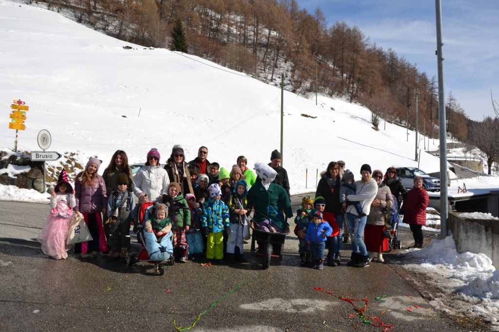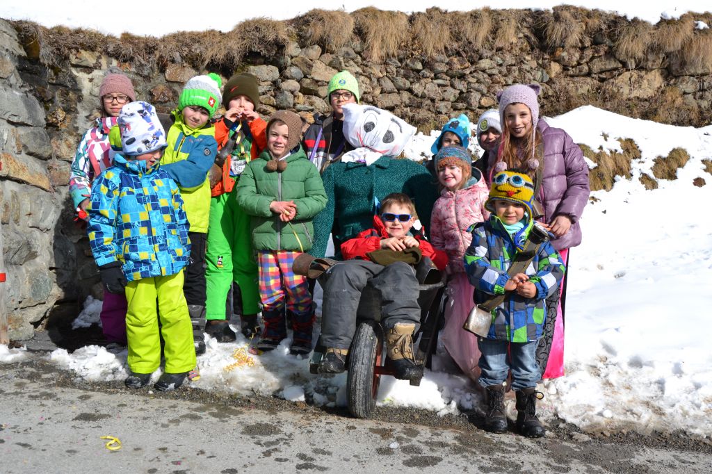 I bimbi di Viano e Brusio posano davanti al loro Pupocc da Marz