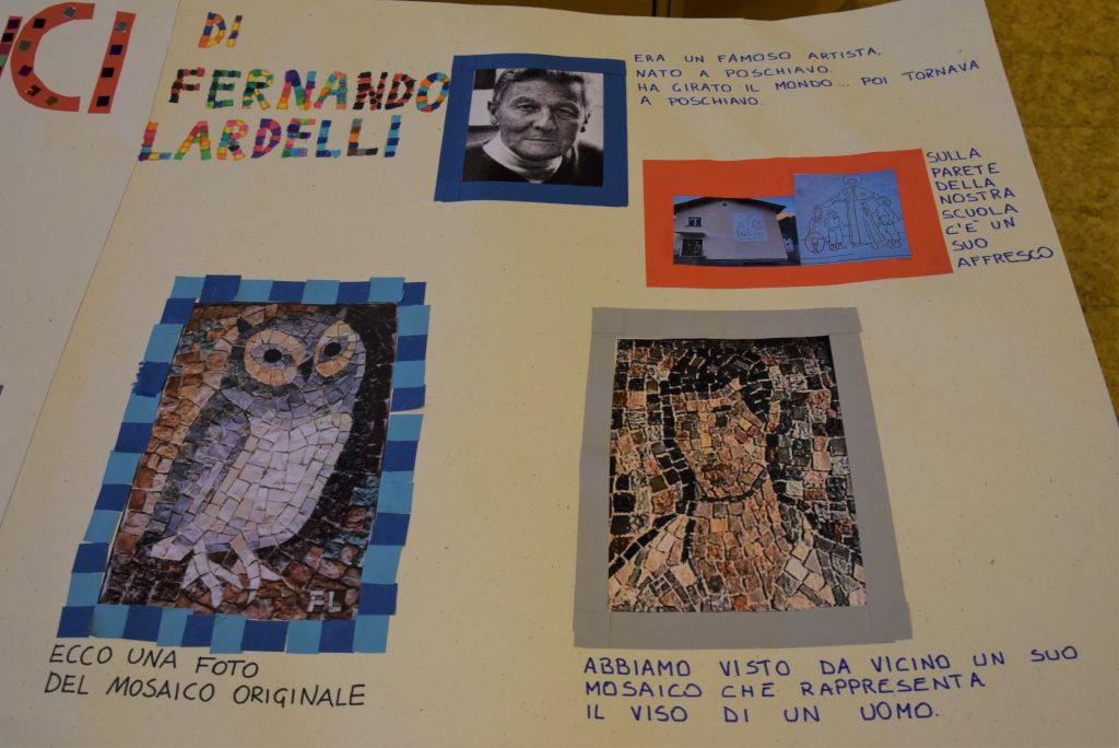 Al rientro delle vacanze natalizie i bambini della scuola dell’infanzia di Le Prese si sono confrontati con la realizzazione di un secondo pannello inerente il progetto “Arte Varuna”, la tematica scelta è stata: i mosaici dell’artista poschiavino Fernando Lardelli (1911-1986). La tecnica del mosaico, eseguita con i colori, è sembrata adatta anche per i bambini della scuola dell’infanzia.