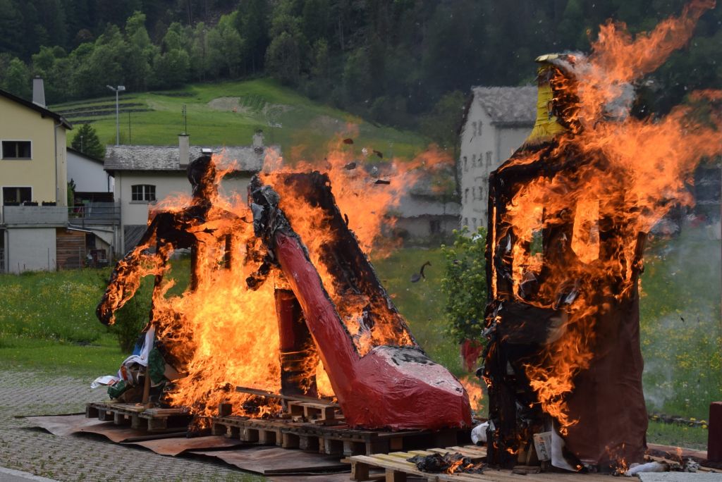 Finalmente anche gli allievi che a giugno termineranno la scuola dell'obbligo, ieri pomeriggio 16 maggio 2022 vicino al piazzale delle scuole comunali a Poschiavo, hanno potuto bruciare i tre pupoc da marz, realizzati come da tradizione durante l'ultimo anno scolastico. Eccovi alcuni immagini dell'evento.
