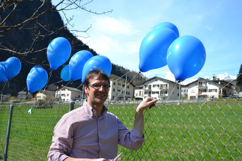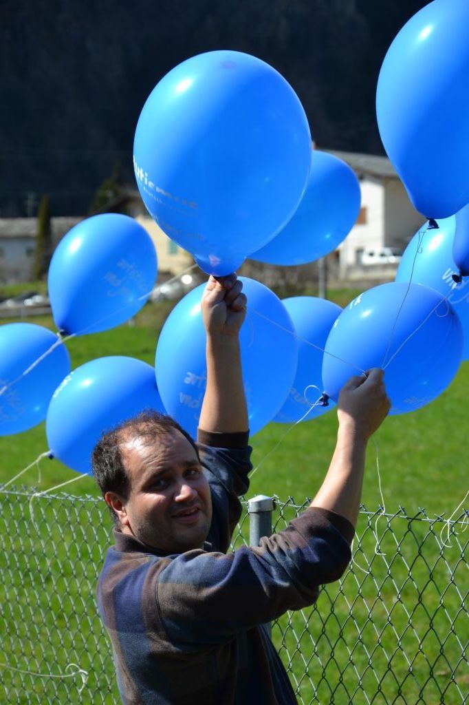 Ieri pomeriggio lunedì di Pasquetta 2 aprile 2018, la Valposchiavo, e più precisamente il cielo sopra il parco giochi di Brusio si è tinto di blu. Ma non un blu qualunque uno molto speciale! Grazie a 100 palloncini la gente della Valposchiavo, durante la manifestazione "tra i öf", ha voluto dedicare un momento particolare alla giornata mondiale per la consapevolezza dell'autismo!