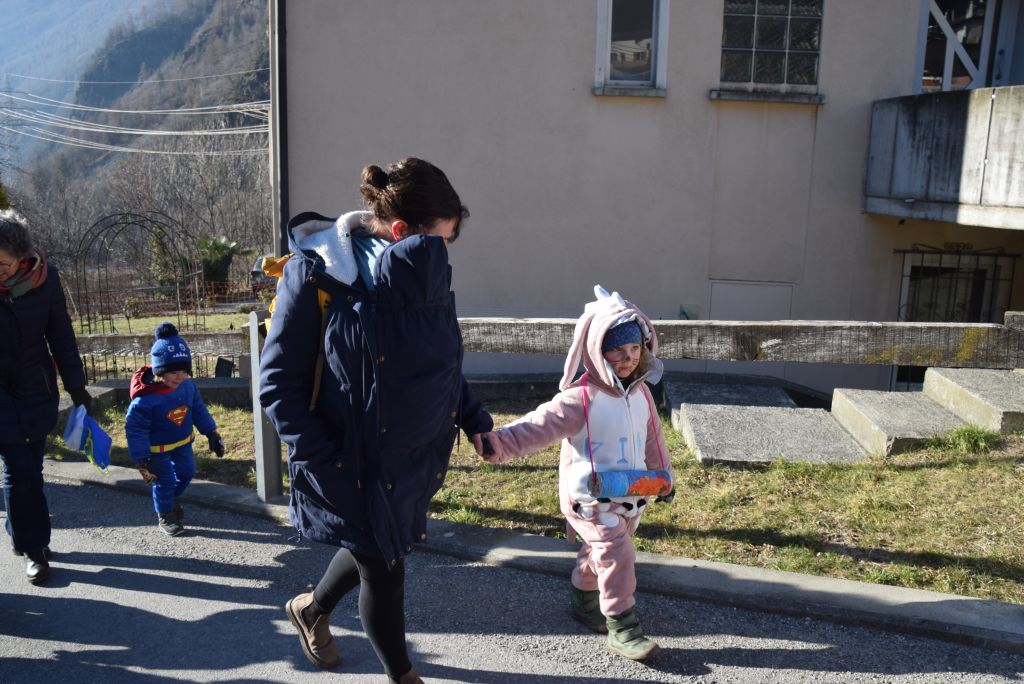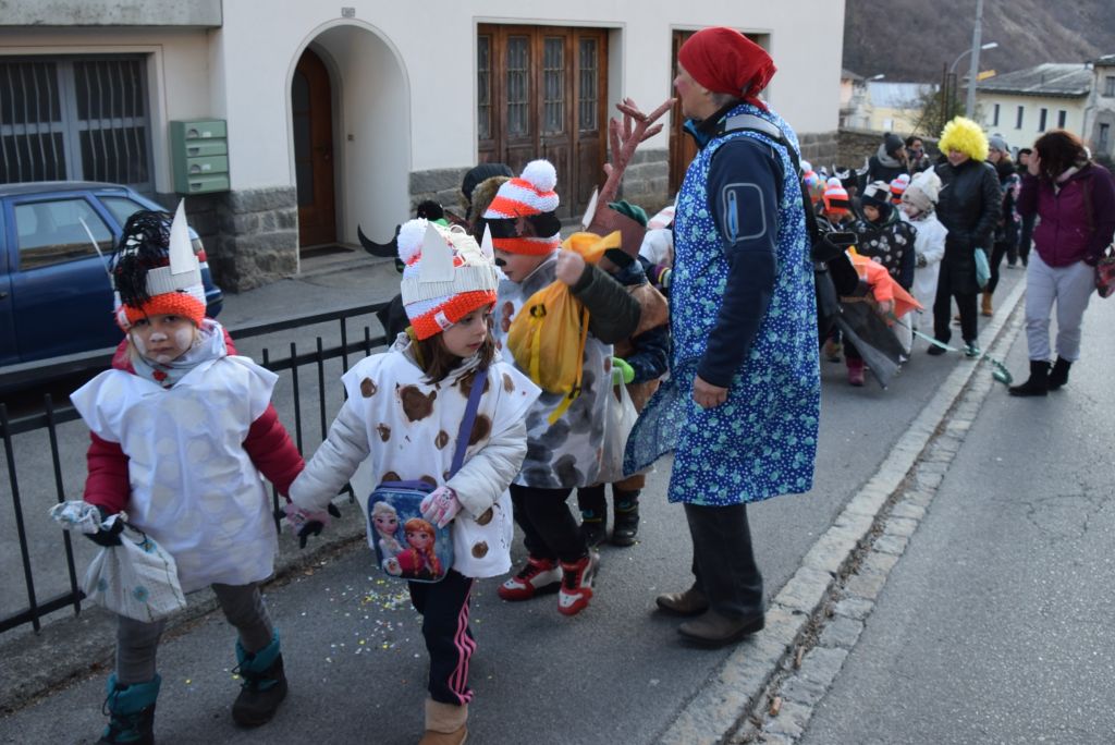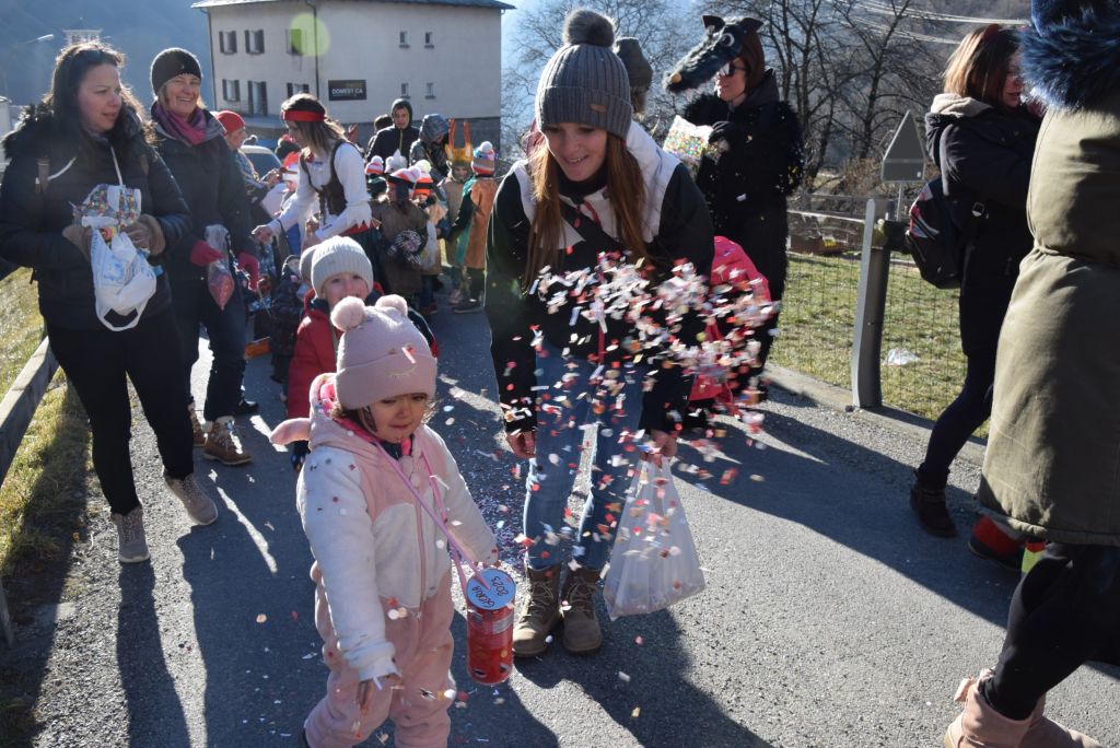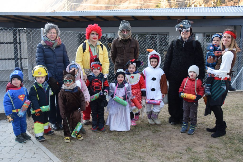 Tempo di carnevale in quel di Brusio. Questa mattina venerdì 10 febbraio 2023, i bambini e le bambine della scuola dell'infanzia di Brusio (19) accompagnati dalle insegnanti Assunta e Natascha, nonché da tanti genitori, hanno sfilato per le vie di Brusio travestiti da animali. Come da tradizione assieme ai piccoli "asilin", c'erano anche i bimbi del Gruppo di gioco Pinguin (14) assieme alle animatrici Orsola e Annalisa. Il tema seguito quest'anno dagli "asilin" è la fattoria, ecco spiegato il perché della scelta di travestirsi da animali. Non solo i tipici animali che solitamente vivono nella fattoria, ma siccome la fantasia dei piccoli stupisce sempre c'erano bimbi mascherati anche da: cani, gatti, cervi e caprioli. Dopo essersi mascherati a dovere, il corteo ha sfilato dalla Sede della SI fino al quartiere "I Prati", i piccoli hanno cantato la canzone "nella vecchia fattoria", poi l'animatrice Orsola ha fatto esplodere la tradizionale e tanto attesa "bomba carta". La giornata si è conclusa con una merenda "carnevalesca".