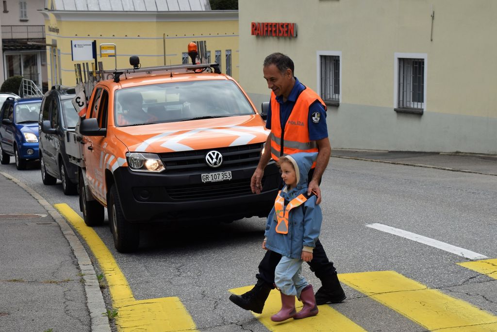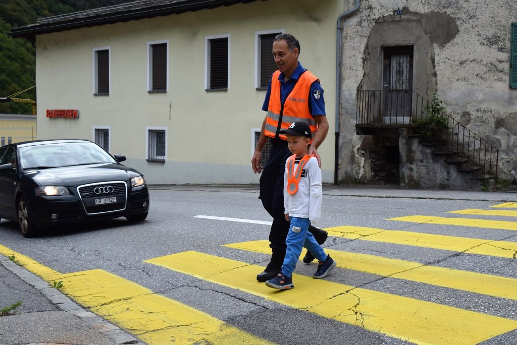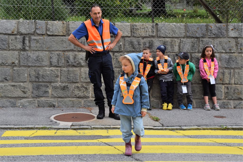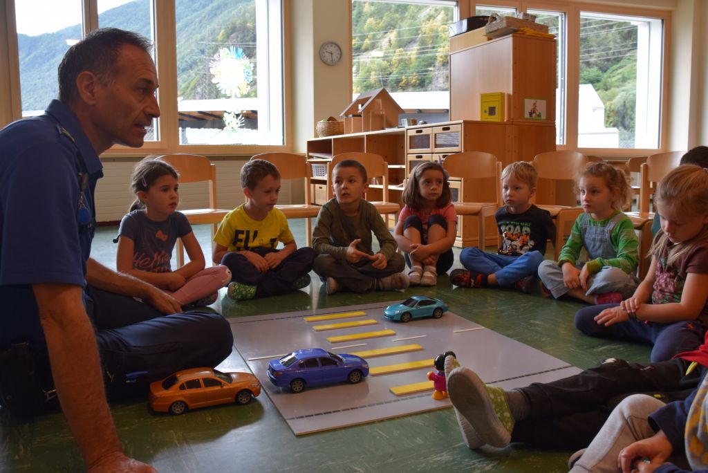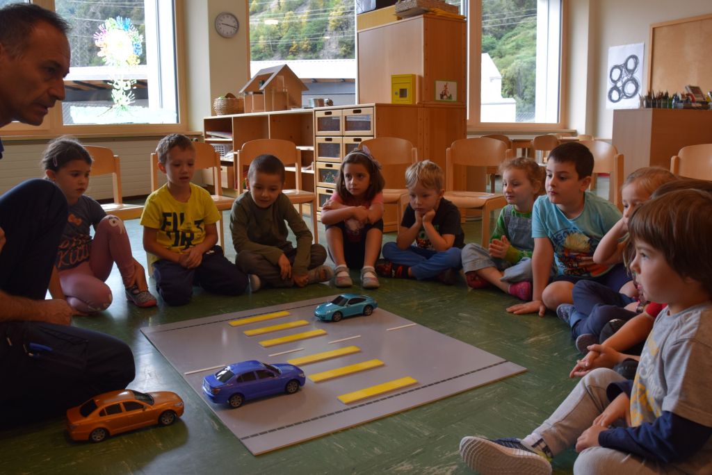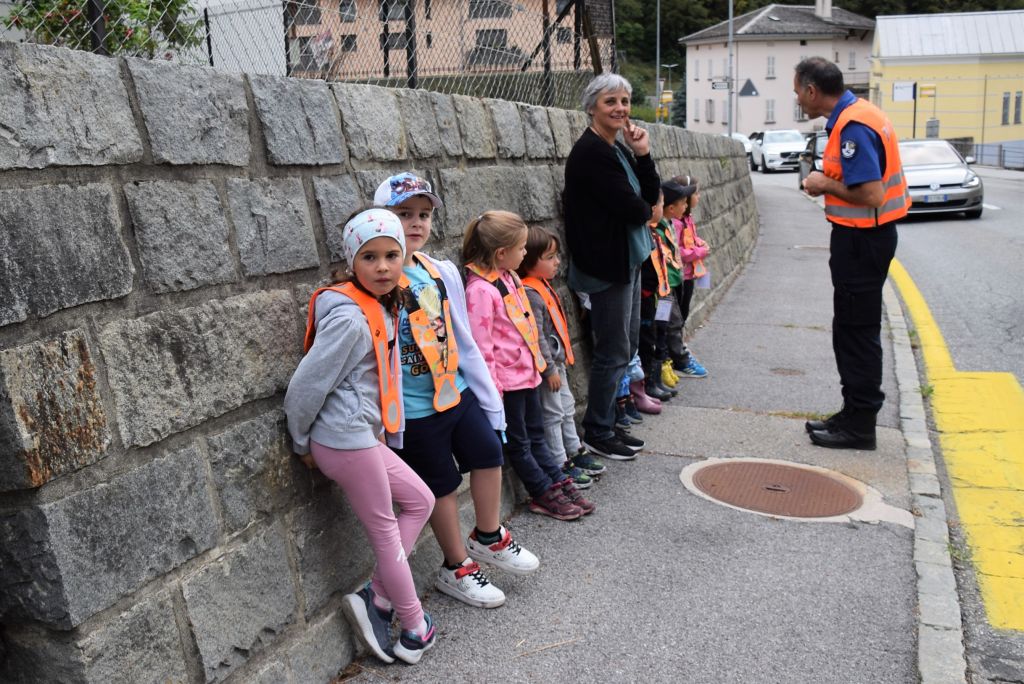 Ieri mattina 30 agosto 2023 Andrea Zala, istruttore di educazione stradale della polizia cantonale dei Grigioni, presso le scuole dell'infanzia, le scuole elementari e quelle del grado secondario I di Poschiavo, Brusio e Bragaglia, ha fatto visita ai bambini della scuola dell'infanzia di Brusio per mostrare ai piccoli "asilin", tutti i pericoli nel traffico stradale, le regole principali e correte di come ci si comporta sulla strada, ma soprattutto è stato accentuato il problema dell'attraversamento di una strada sulle strisce pedonali. Dopo un'attenta e accurata spiegazione teorica, con l'ausilio di una strada, delle macchinine e un bambina di plastica , coinvolgendo con più domande anche i bimbi, si è passato alla parte pratica. L'insegnante Assunta e i dieci bambini della SI, si sono diretti in prossimità della strada cantonale, dove l'agente di polizia gli ha insegnato ad attraversare nel modo corretto la strada sulle strisce pedonali.