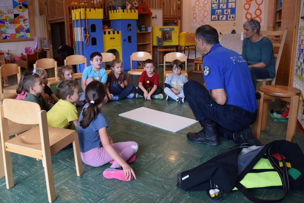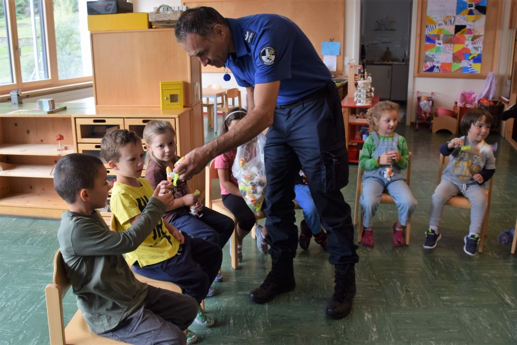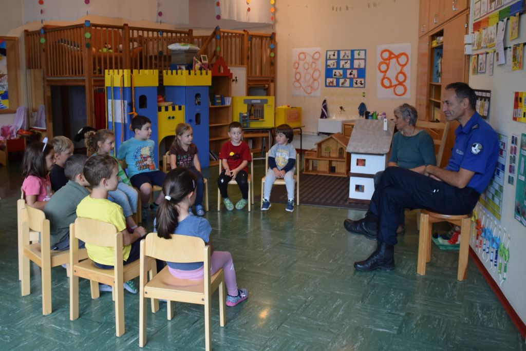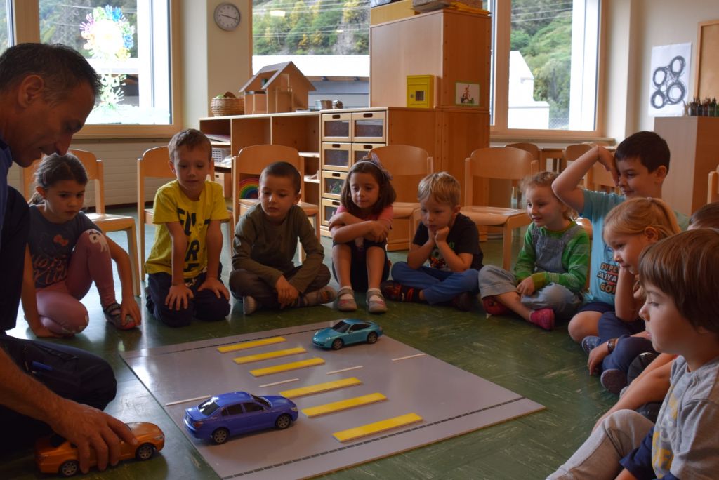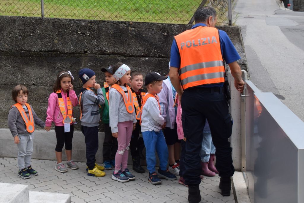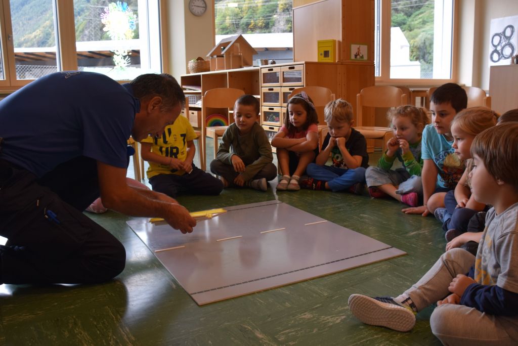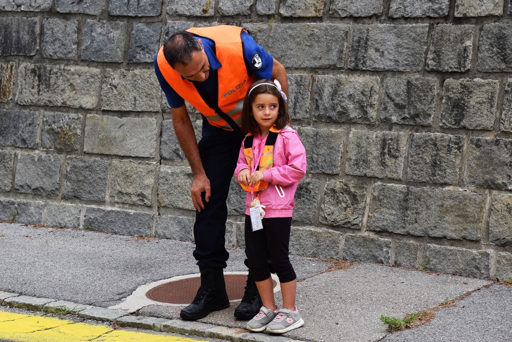 Ieri mattina 30 agosto 2023 Andrea Zala, istruttore di educazione stradale della polizia cantonale dei Grigioni, presso le scuole dell'infanzia, le scuole elementari e quelle del grado secondario I di Poschiavo, Brusio e Bragaglia, ha fatto visita ai bambini della scuola dell'infanzia di Brusio per mostrare ai piccoli "asilin", tutti i pericoli nel traffico stradale, le regole principali e correte di come ci si comporta sulla strada, ma soprattutto è stato accentuato il problema dell'attraversamento di una strada sulle strisce pedonali. Dopo un'attenta e accurata spiegazione teorica, con l'ausilio di una strada, delle macchinine e un bambina di plastica , coinvolgendo con più domande anche i bimbi, si è passato alla parte pratica. L'insegnante Assunta e i dieci bambini della SI, si sono diretti in prossimità della strada cantonale, dove l'agente di polizia gli ha insegnato ad attraversare nel modo corretto la strada sulle strisce pedonali.