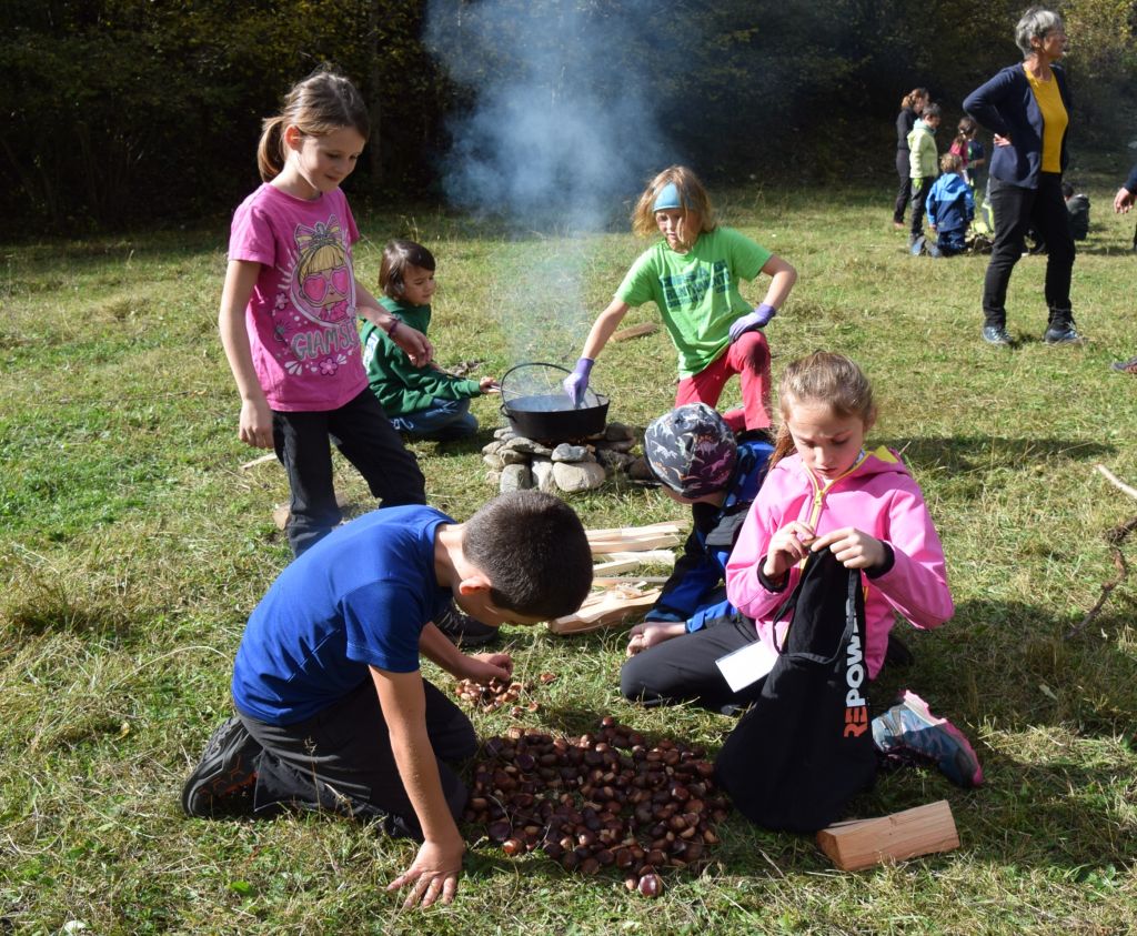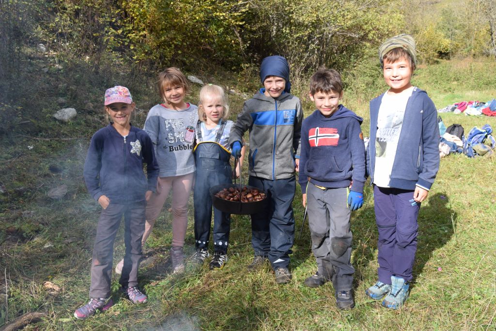 Serie di immagini della bella giornata che ieri ha accompagnato scolari, insegnanti e i 2 marunat da Brüs, durante la tradizionale castagnata scolastica.