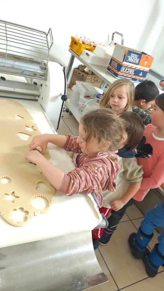 I dieci bambini che frequentano la Scuola dell'infanzia di Brusio e l'insegnante Assunta hanno trascorso una bellissima mattinata alla panetteria e pasticceria di Ivan Rossi a Brusio. Prima hanno dato forma e decorato i "Grittibenz", gli omini di pasta, e mentre cuocevano hanno preparato i biscotti di Natale con formine di diversi tipi. Le paste erano già state preparate dal pasticcere Rossi. Ad aiutare c'era anche la figlia di Ivan, Andrea. L'insegnate Assunta ringrazia Ivan e Andrea per l'invito.