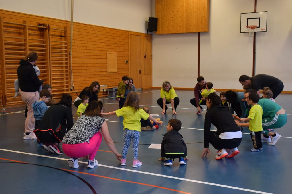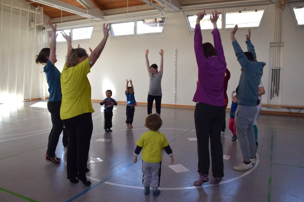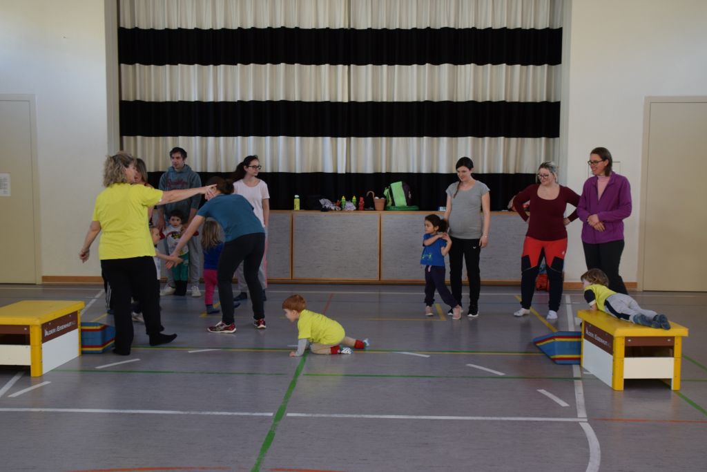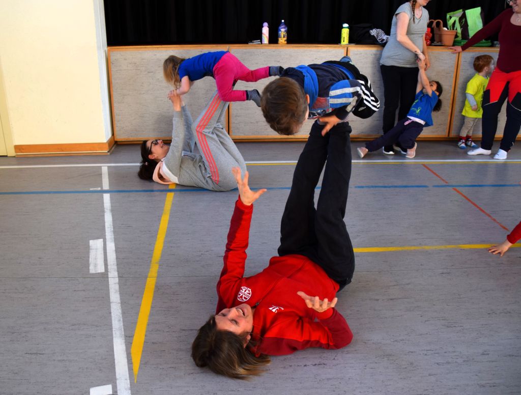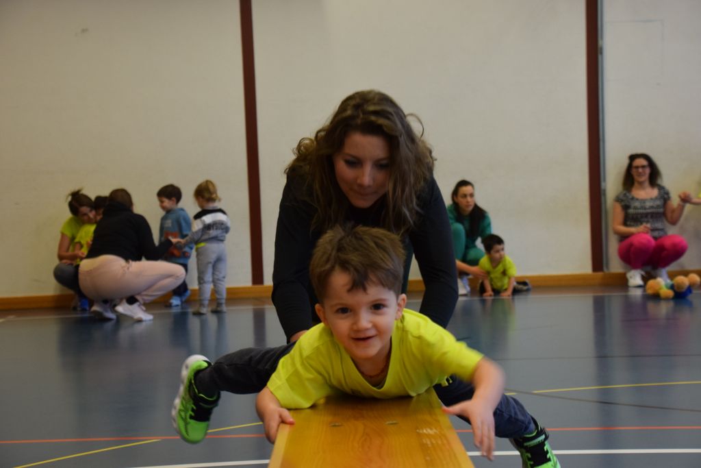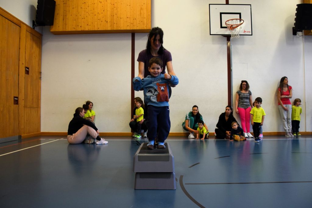 Serie di immagini dei bimbi e delle mamme della Valposchiavo che partecipano al corso ginnastica mamma e bambino. Il martedì e il venerdì dalle 9.30 alle 10.45 alle palestra dell'Annunziata, mentre il giovedì dalle 9.30 alle 10.45 alla palestra scolastica di Brusio.