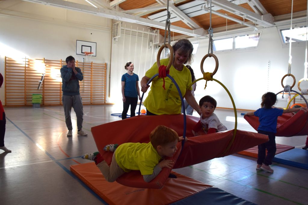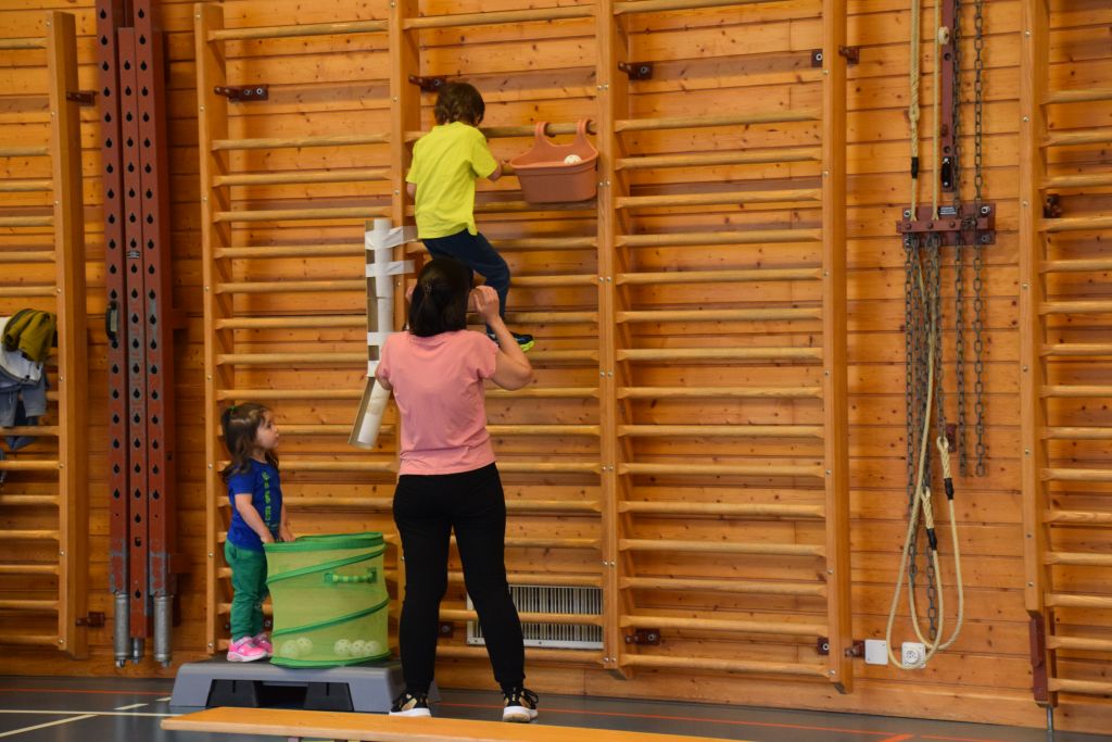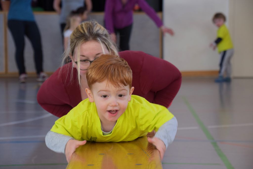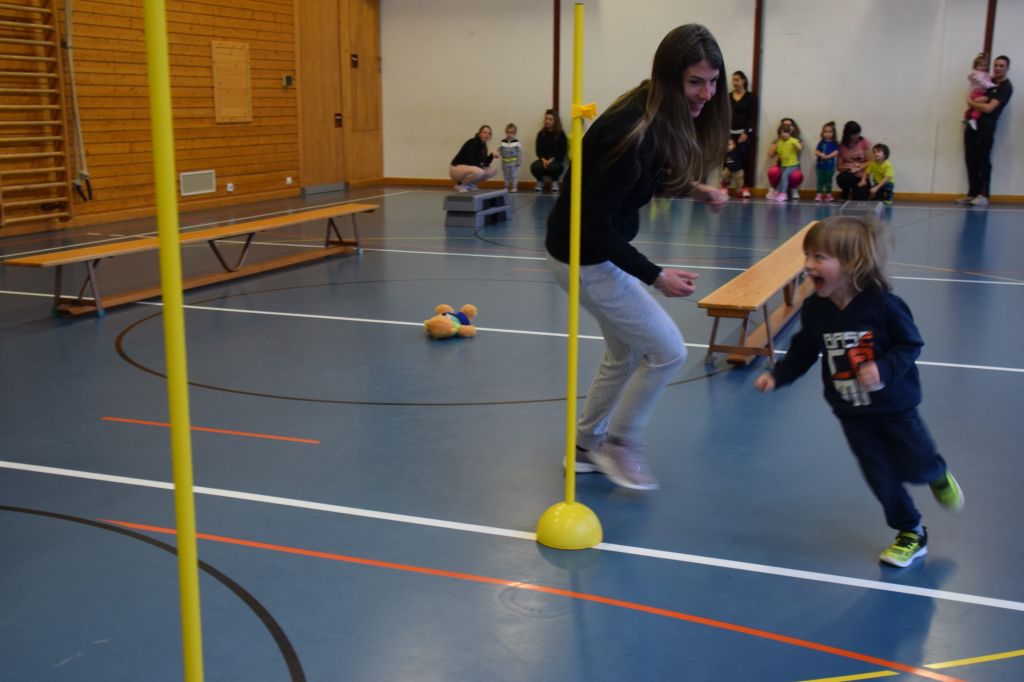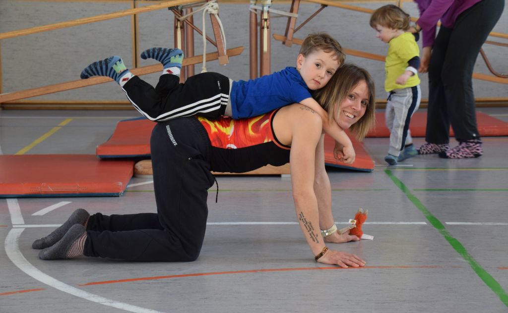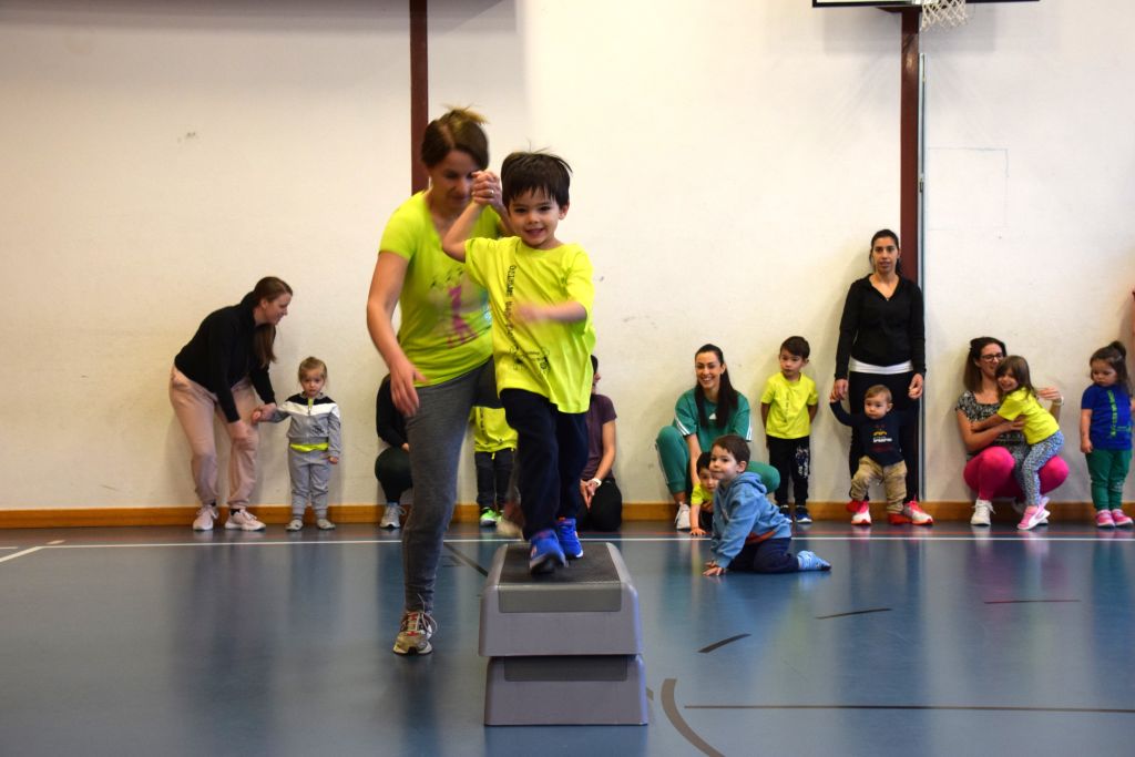 Serie di immagini dei bimbi e delle mamme della Valposchiavo che partecipano al corso ginnastica mamma e bambino. Il martedì e il venerdì dalle 9.30 alle 10.45 alle palestra dell'Annunziata, mentre il giovedì dalle 9.30 alle 10.45 alla palestra scolastica di Brusio.