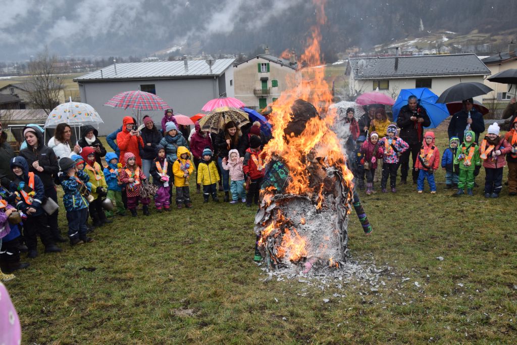 Nonostante la pioggia, questa mattina 1°marzo 2024, i bambini della scuola dell'infanzia del Comune di Poschiavo hanno potuto festeggiare il tradizionale 1°di marzo con il consueto corteo, partenza da Le Prese, con il rito finale della messa al rogo del loro Pupoc da marz: "IL MAGO OSCURO". Speriamo che siano riusciti a scacciare l'inverno per far posto alla tanto attesa primavera. Le insegnati ringraziano: Maria Tuena del ristorante Sagittario a Pagnoncini per aver potuto fare merenda all'asciutto, a Gregor e Monica per il prato dove è stato bruciato il Pupoc, Paola Locatelli per il carretto e tutte le mamme che hanno contribuito all'allestimento della merenda, e tutti coloro che in un modo o nell'altro hanno reso possibile la realizzazzione di questo evento.