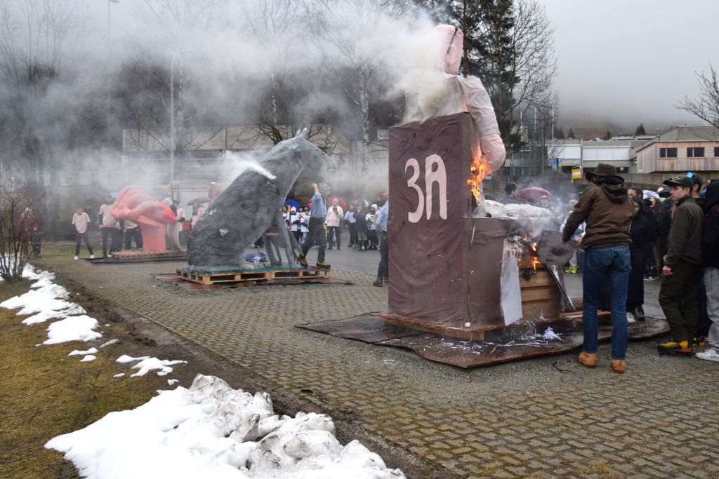 Oggi pomeriggio venerdì 1° marzo 2024, anche gli scolari di terza del grado superiore I del Comune di Poschiavo hanno sfoggiato i loro tre bellissimi Pupoc da marz per le vie del Borgo di Poschiavo. Dopo il giro i tre pupazzi sono stati messi al rogo e al suono dei numerosi campanacci sono stati bruciati così da scacciare l'inverno e richiamare la primavera. Queste le tematiche scelte per realizzare i tre fantocci: "il lupo" 3AP, contro il femminicidio 3PL e ansia e paure 3A.