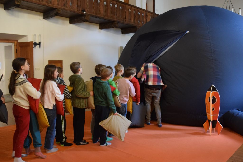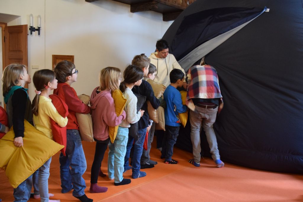 In questi giorni le classi scolastiche del Comune di Poschiavo, dalla scuola dell'infanzia alle scuole secondarie, visitano il Planetario allestito nella Sala Torre di Poschiavo. Il progetto s'inserisce nel contenitore annuale "Scienza e magia" e mira a far scoprire l'universo.