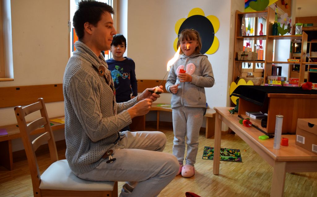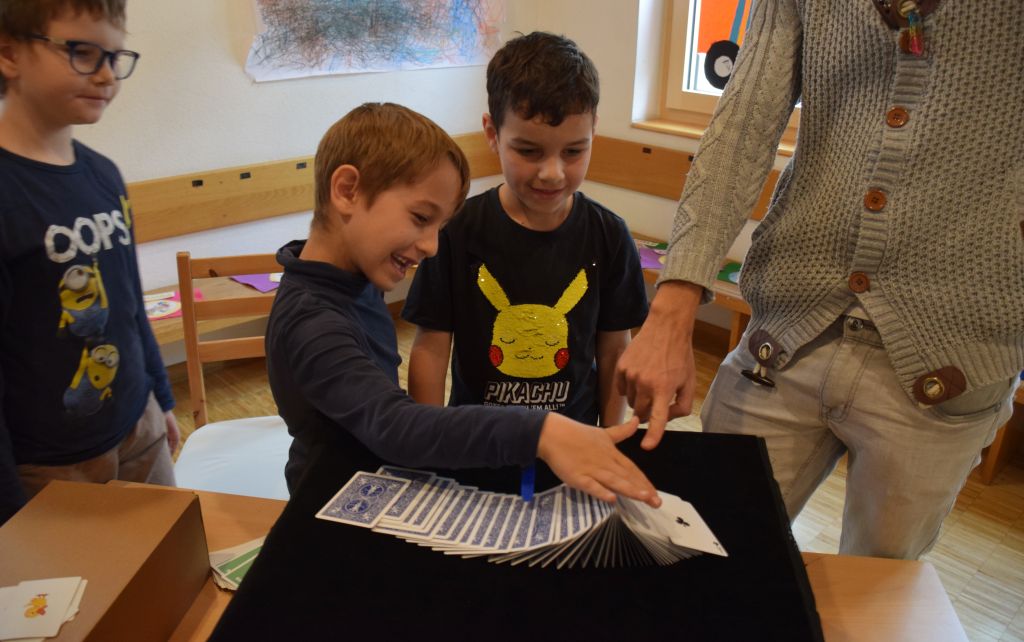 Giovedì 15 mggio 2024 gli alunni delle due sezioni della scuola dell'infanzia di Poschiavo hanno intrattenuto e stupito i genitori con uno spettacolo di magia. L'idea è scaturita dal contenitore tematico "scienza e magia" proposto a tutti i cicli della scuola, che ha permesso di collegare il tema circo della sede, che ben si abbina ai giochi di prestigio. Tutto ciò si è reso possibile grazie alla collaborazione con il mago Fabio, il quale li ha introdotti, grazie ai suoi trucchi, in un mondo magico pieno di stupore e divertimento. I bambini hanno così potuto dapprima meravigliarsi e poi sperimentare, diventando protagonisti assoluti dello spettacolo. Un ringrazianto particolare al mago Fabio che durante diverse attività, ha saputo trasmettere ai bambini le sue conoscenze con rispetto, stimolando la loro innata curiosità.