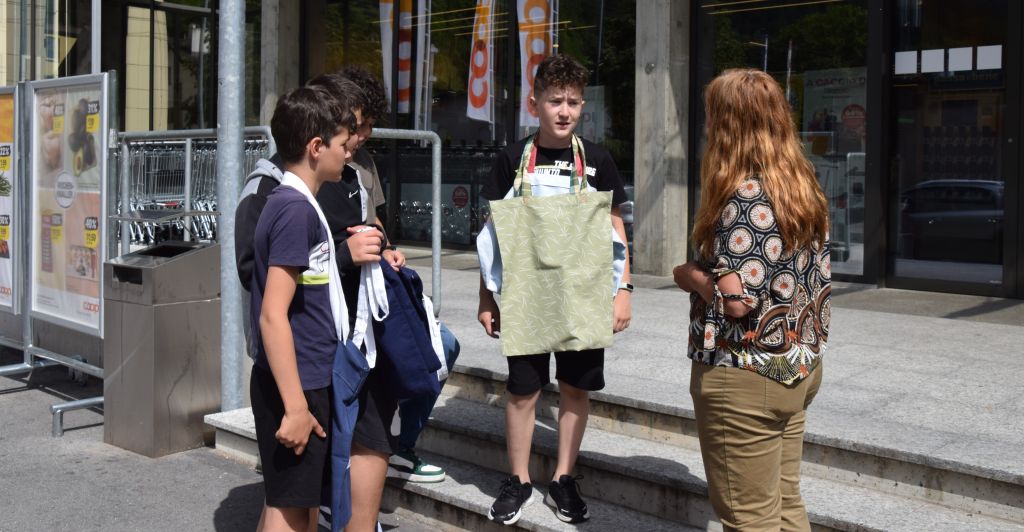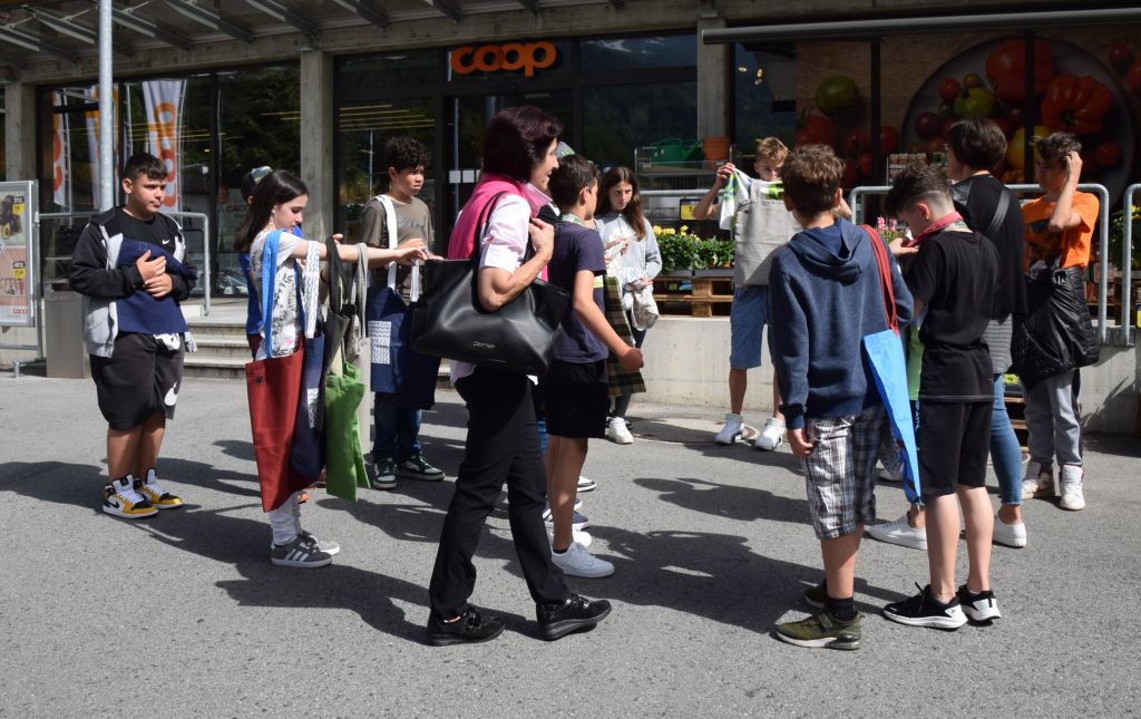 Ieri mattina, mercoledì 19 giugno 2024, gli alunni e le alunne della 6ª sud di Poschiavo hanno regalato alle persone che si recavano a fare la spesa le loro borse realizzate durante le ore di ATT con le insegnati Sandra Zanolari e Tecla Crameri. Naturalmente tutti coloro che hanno ricevuto l’omaggio hanno dato un offerta ai ragazzi, sia per la bella idea che per le altrettanto bellissime borse. L'idea di realizzare queste borse è nata riflettendo tra di loro sulla necessità di intervenire in favore del clima. Gli scolari sanno che c'è troppa plastica, troppo inquinamento. «Cosa possiamo fare noi concretamente?»; è nata così l’idea e con il sostegno delle insegnanti si è infine deciso di realizzare delle borse con resti di stoffa da regalare a chi si recava a fare la spesa, persone incontrate davanti ai negozi a Poschiavo. I ragazzi e le ragazze hanno provato così a sensibilizzare uomini e donne su un problema che spesso vien sottovalutato, invogliando così a consumare meno plastica!