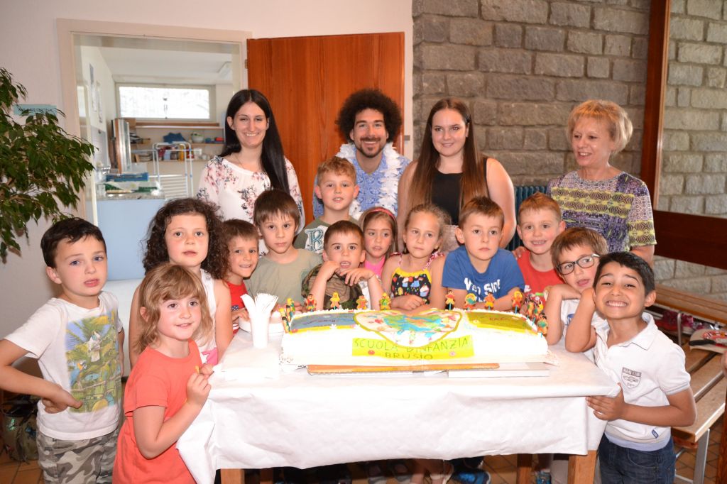 Foto di gruppo dei piccoli asilin e degli insegnati della SI di Brusio! (Foto di Paola Tuena).