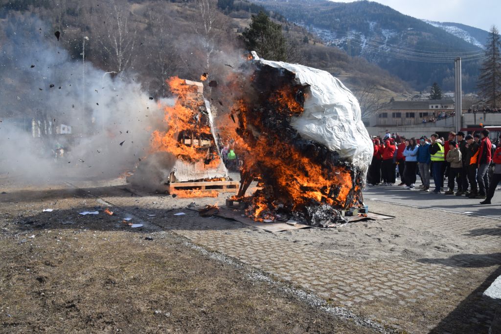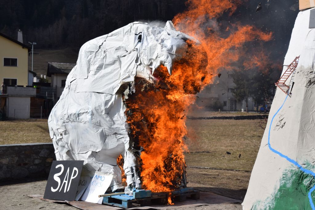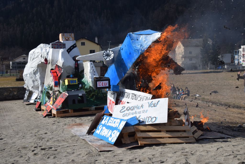 1° marzo: come tradizione vuole, questa mattina sabato 1° marzo 2025, gli scolari di terza del grado superiore I di Poschiavo hanno messo al rogo i loro tre bellissimi pupazzi. Molta la gente presente al corteo. Dopo il giro per le vie di Poschiavo, i tre pupoc sono stati messi al rogo sul piazzale delle scuole comunali, bruciamo l'inverno per far posto alla tanto attesa primavera. Ogni classe assieme al proprio insegnante sceglie un tema, e poi lo segue per la realizzazione del suo bellissimo ed originale "pupoc". Tema per gli scolari della 3PL dell'insegnante Alberto Crameri "il consumismo". "Il passo del Bernina" il tema degli scolari della 3A dell'insegnante Catia Curti e per finire "l'estinzione dell'orso polare", il tema degli scolari della 3AP dell'insegnante Francesca Lardi. Eccovi una serie di immagini di questa bellissima manifestazione. I carri erano seguiti dai compagni che indossavano le magliette create a mano, ispirate alla primavera nonché dal suono di numerosi campanacci.