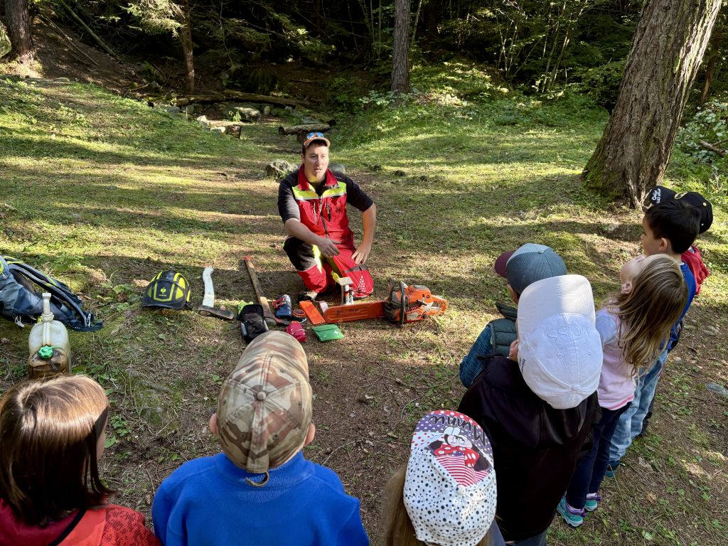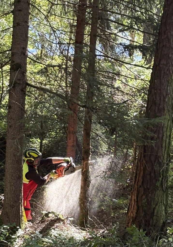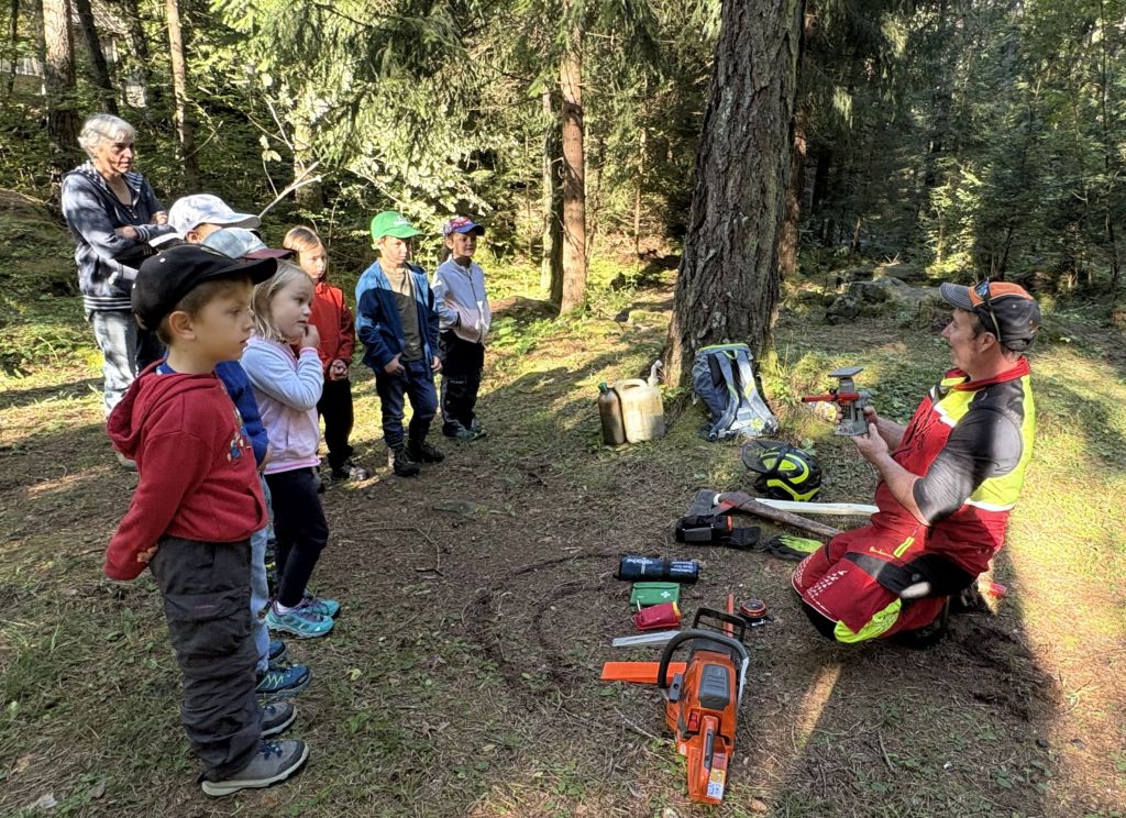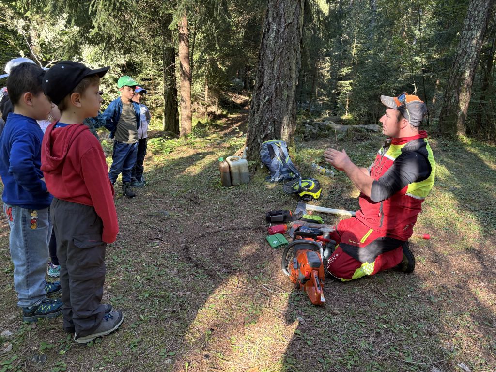 Durante l’anno scolastico, per quattro volte, i bambini della scuola dell’infanzia di Brusio e le insegnanti Assunta e Natascha trascorrono una giornata nel bosco, e più precisamente a Garbela. Ad ogni uscita è programmato qualcosa di speciale. Assieme al gruppo, giovedì 18 settembre 2025 c’era Alan Garavatti (responsabile edili e infrastrutture del comune di Brusio). Alan ha mostrato ai piccoli il taglio di una pianta. Prima di tutto ha presentato e spiegato il funzionamento dei suoi attrezzi, ma cosa più importante i pericoli che ci possono essere durante il taglio e come tagliare un albero in sicurezza. L'abbattimento di una pianta deve essere pianificato con cura, esaminare l'albero, l'ambiente e definire le fasi di lavoro in anticipo. Dal ceppo rimasto in terra Alan ha realizzato con la sua motosega un fungo, mentra dal resto del tronco ha tagliato dieci piccoli pezzi sistemati attorno al fuoco ed usati dai bambni come sgabelli. I bambini hanno aiutato Alan a sgomberare l'area di gioco da rami e rametti portandoli sotto gli alberi dove porteranno nuovo nutrimento al suolo. Per concludere in bellezza la giornata servole grigliate per tutti. Le insegnanti ringraziano Alan Garavatti, la redazione ringrazia l’insegnate Natascha per le foto.