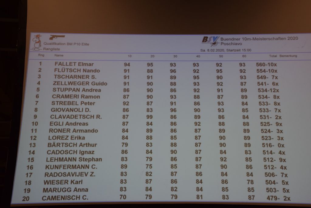 Protagoniste assolute oggi sabato nelle "Finali Grigionesi di Tiro", organizzate a Poschiavo dalla Società Tiratori Poschiavo, le competizioni singole. Per la pistola, Ramon Crameri è giunto 6° su 20 tiratori nelle qualificazioni, risultato che gli ha aperto le porte alla meritata finale. Qui si è scontrato con altri 7 tiratori, giungendo al 5° posto. Per quanto riguarda la partecipazione alla carabina, hanno lottato per un posto in finale: Giorgio Murbach, Reto Costa, Ruggero Tuena e Luca Cortesi, i 4 atleti poschiavini non si sono però qualificati.