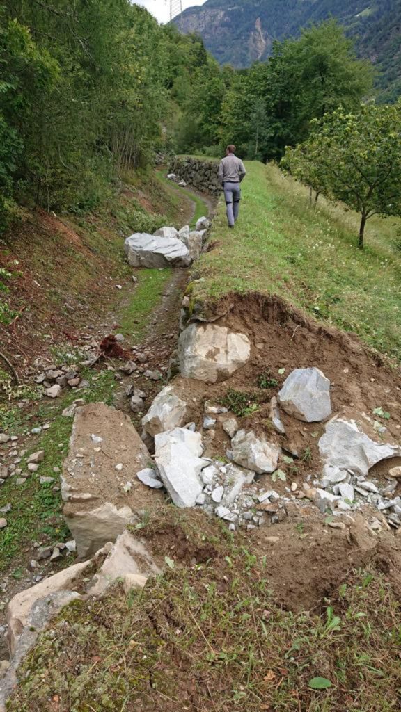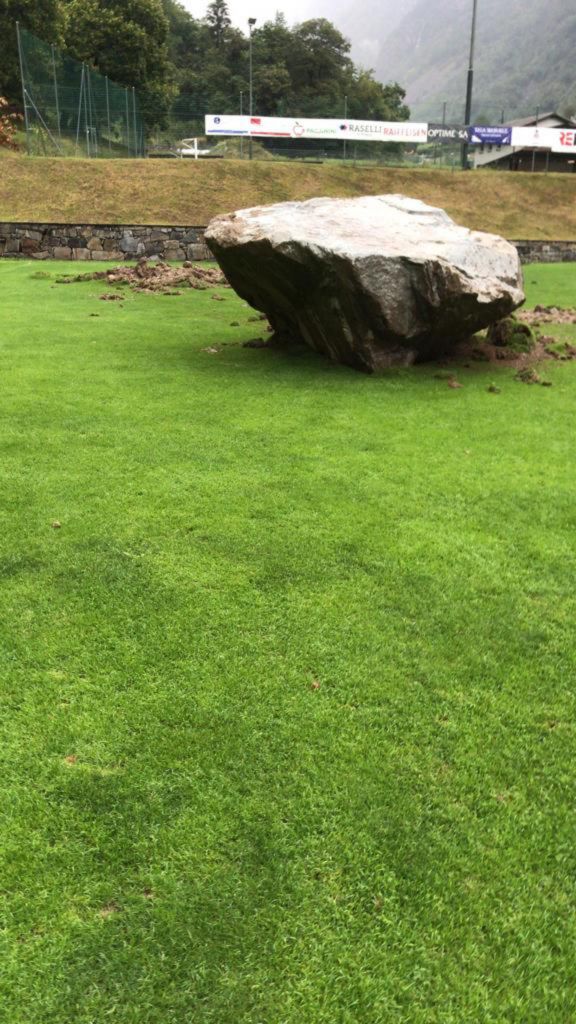 Il grande masso che è rotolato sul campo da calcio ai Casai di Campascio, a causa delle forti precipitazioni delle scorse settimane, è stato rimosso dalla ditta Paganini Crap di Zalende. Ripristinato anche il manto erboso che era stato danneggiato dall'enorme blocco con prato a rotoli a posa immediata, effettuata dalla Giardineria Compagnoni di Campascio. Il tappeto erboso, malgrado siano consigliati una settimana o dieci giorni per una buona aderenza al terreno, essendo più spesso del solito, può essere calpestato sin da subito.