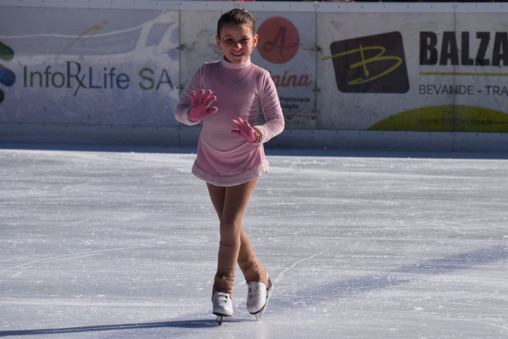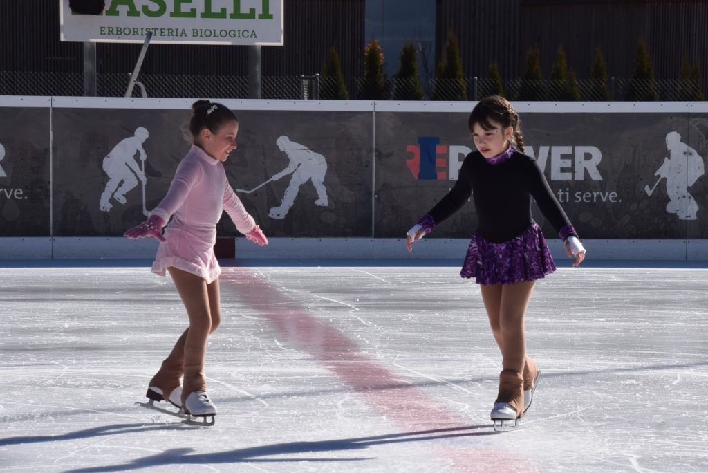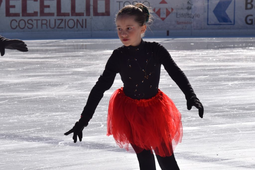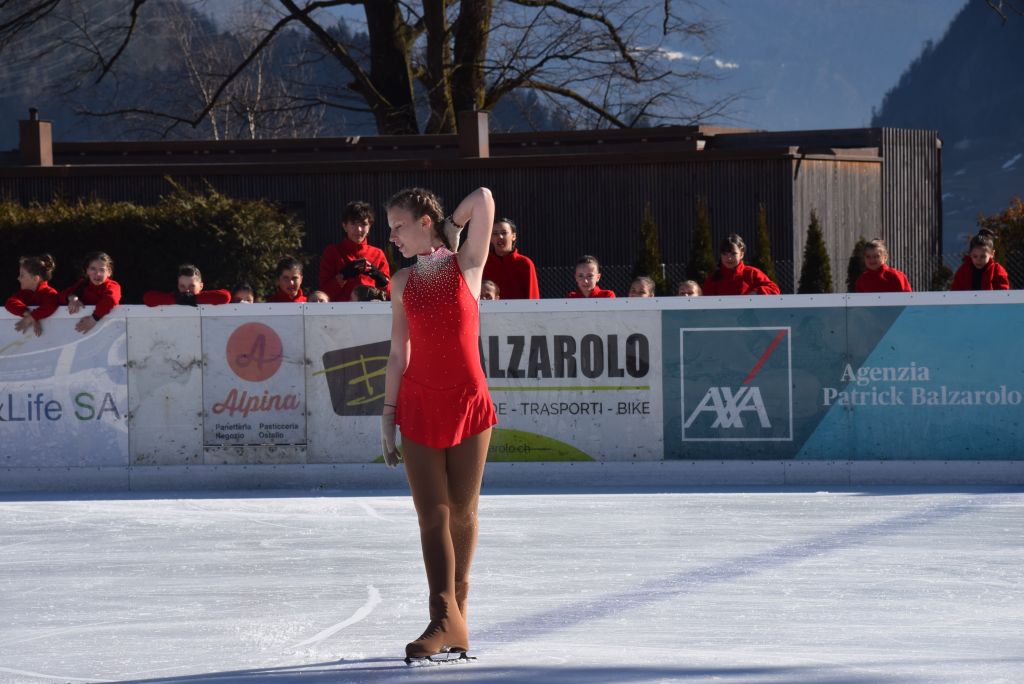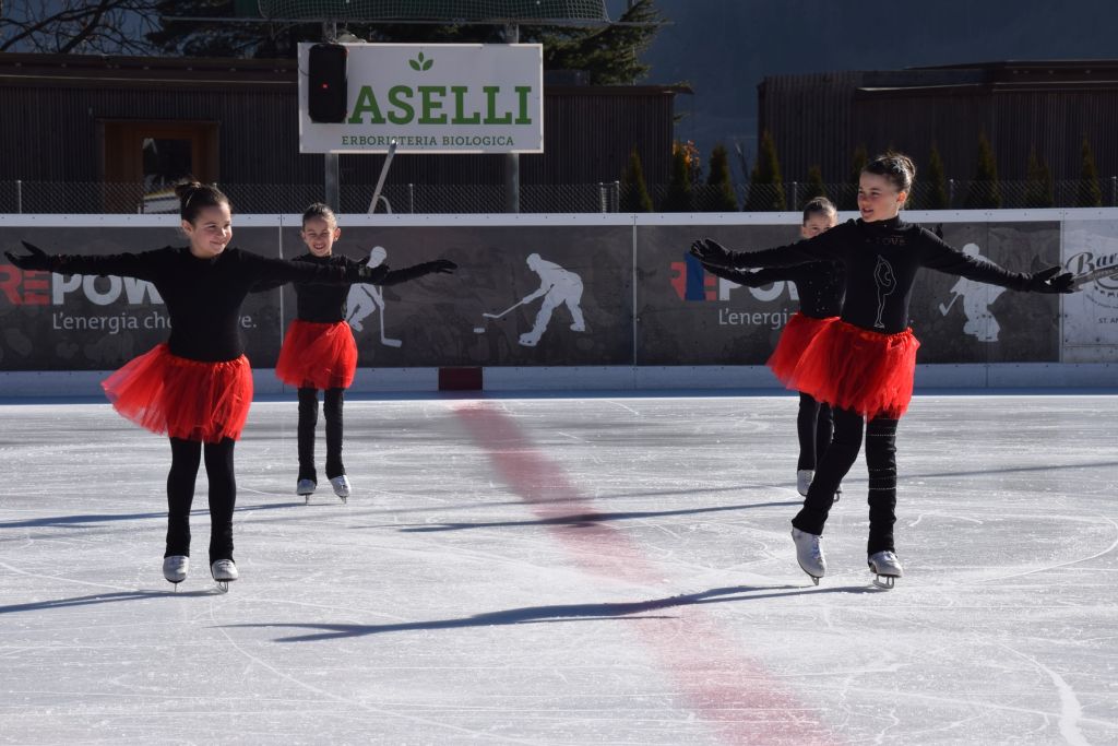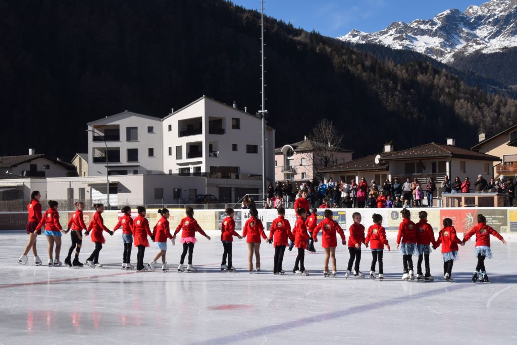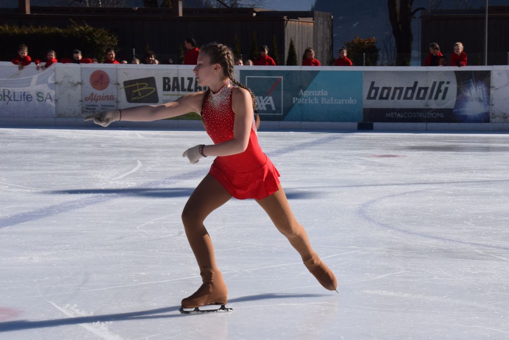 Galleria fotografica del saggio di ieri domenica 19 febbraio 2023 sul campo di ghiaccio a Le Prese intitolato: "art on ice".