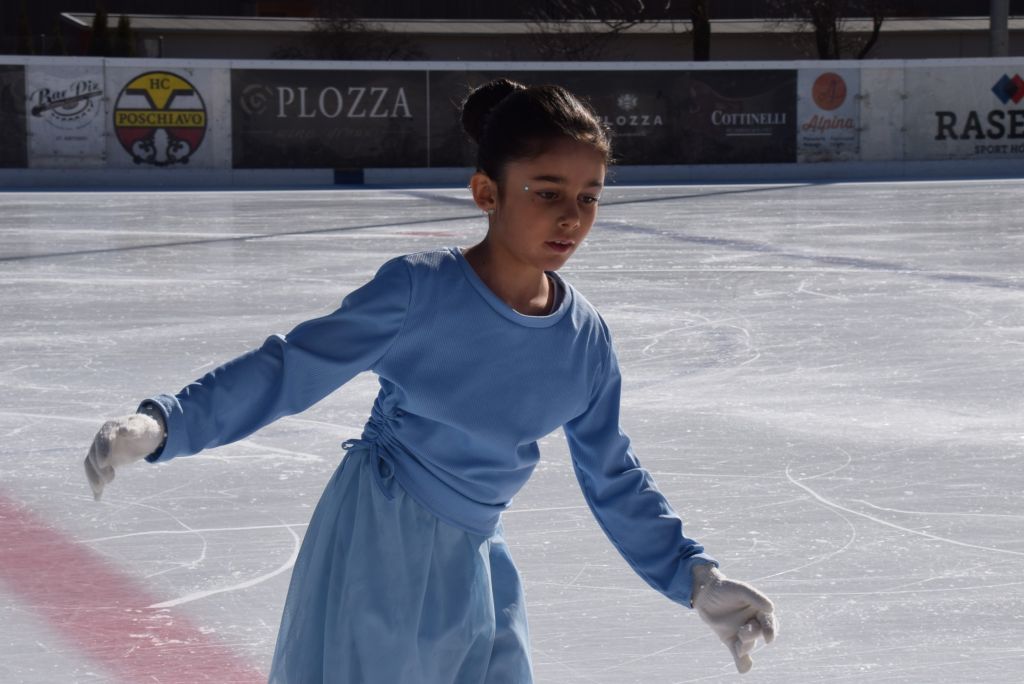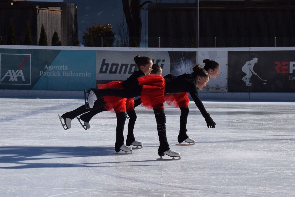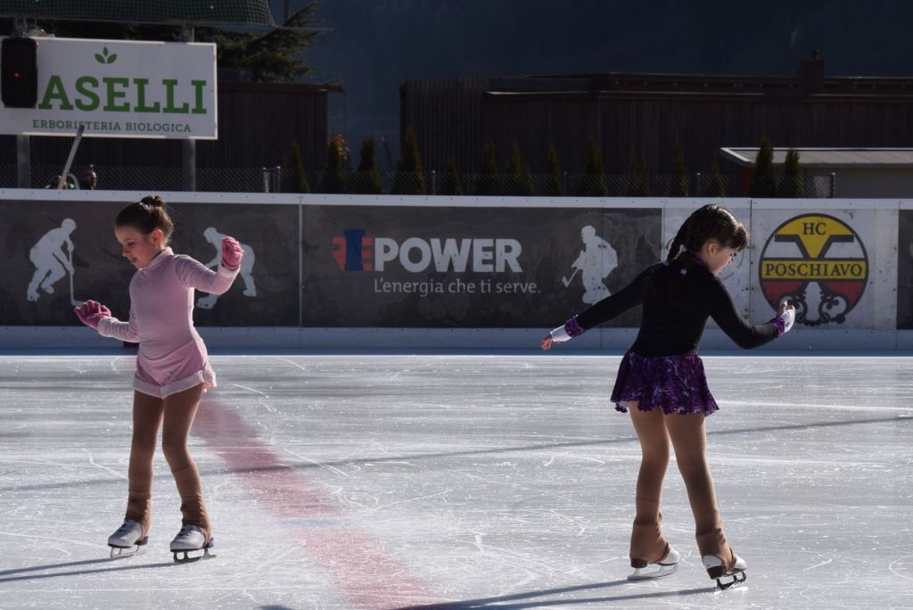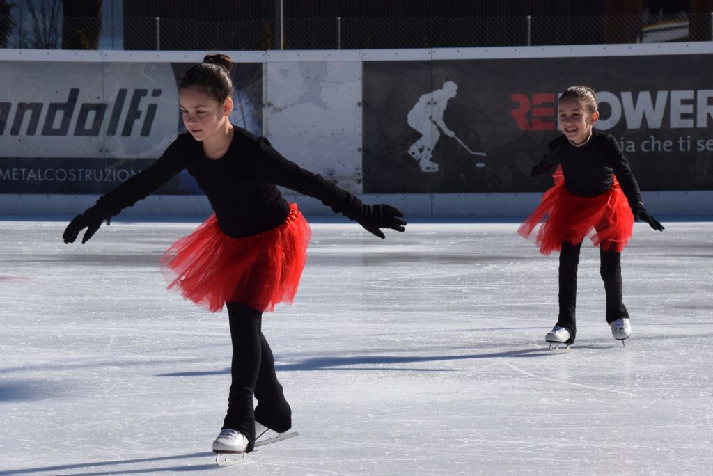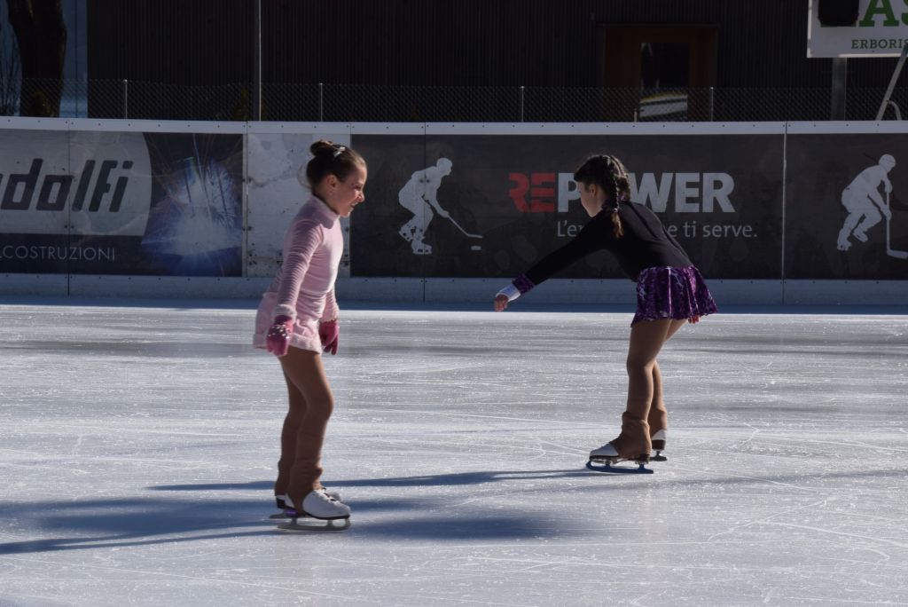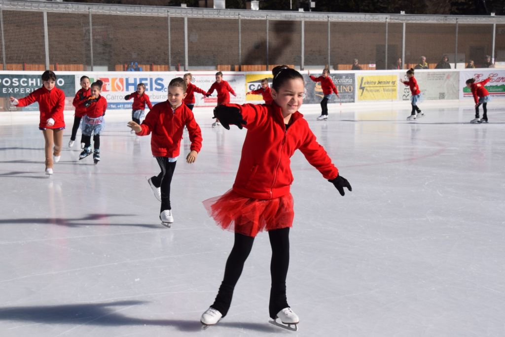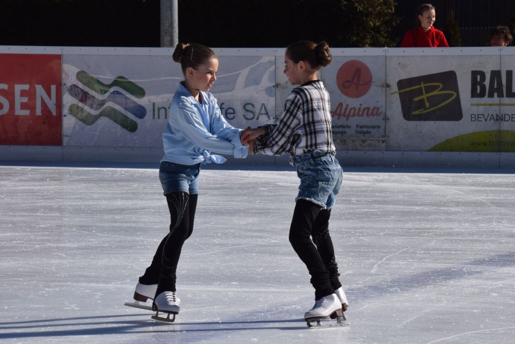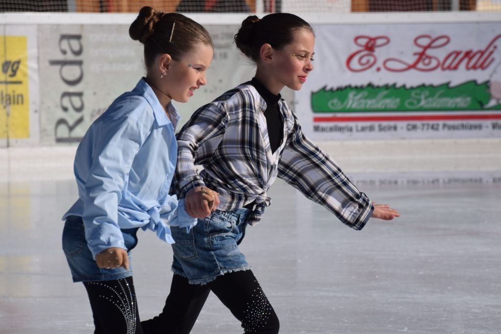 Galleria fotografica del saggio di ieri domenica 19 febbraio 2023 sul campo di ghiaccio a Le Prese intitolato: "art on ice".