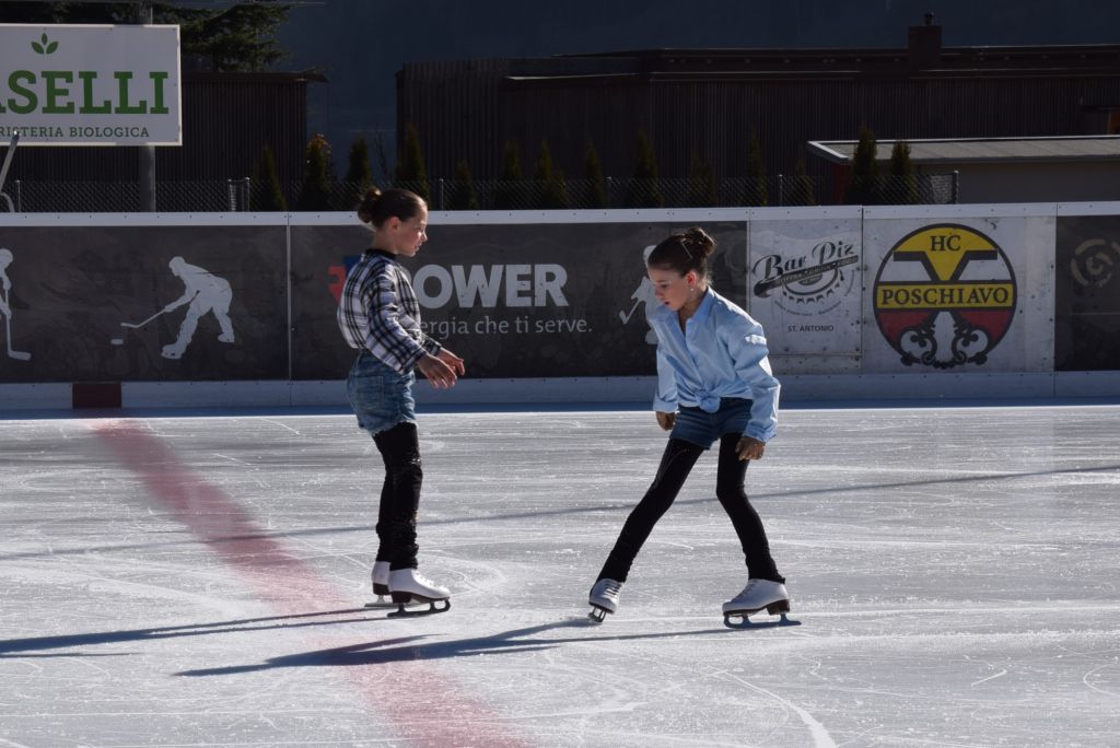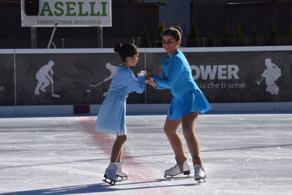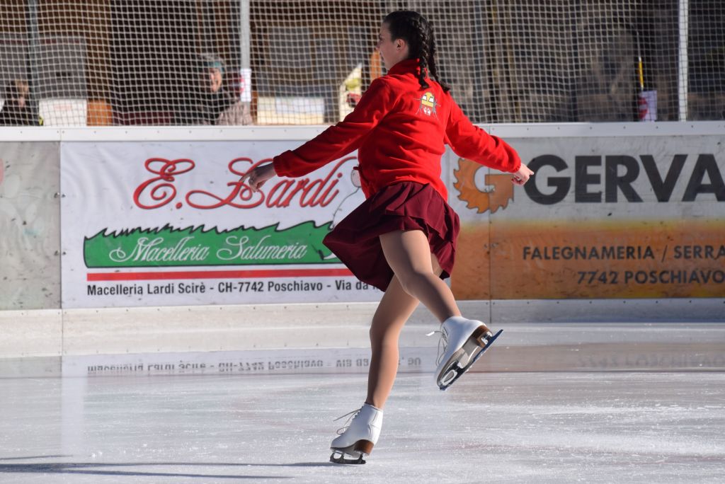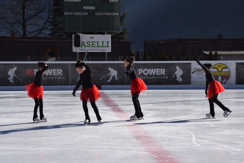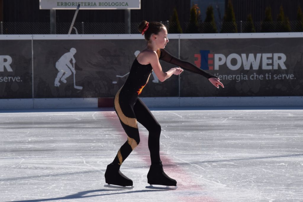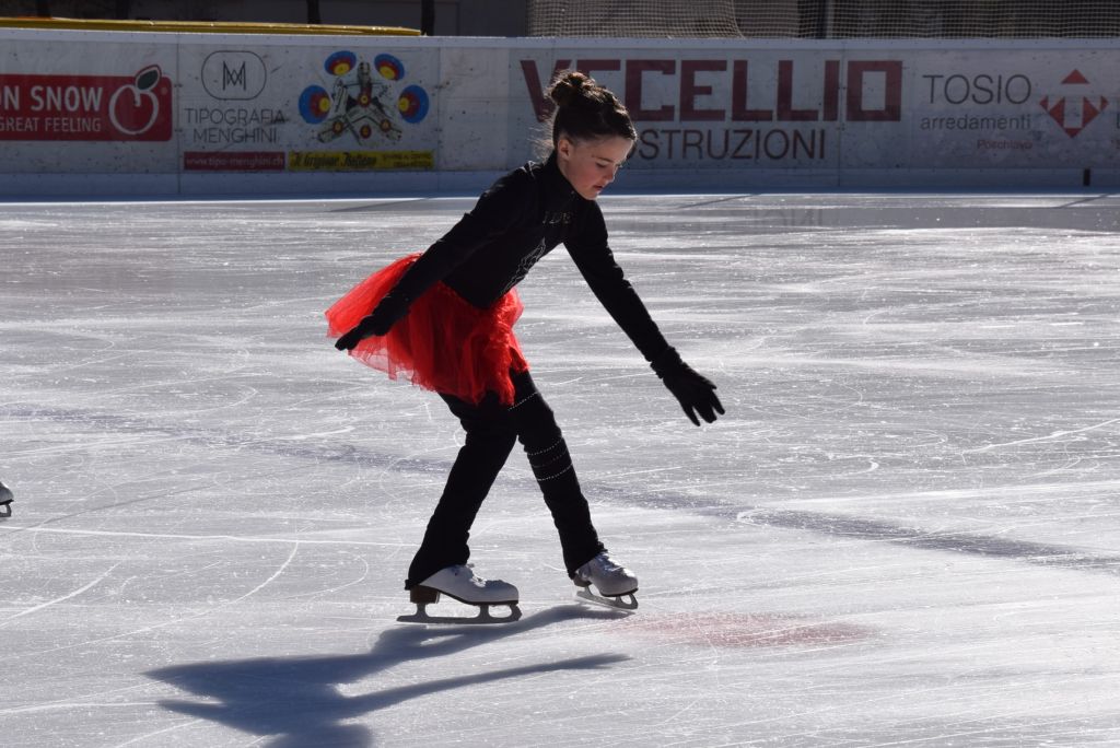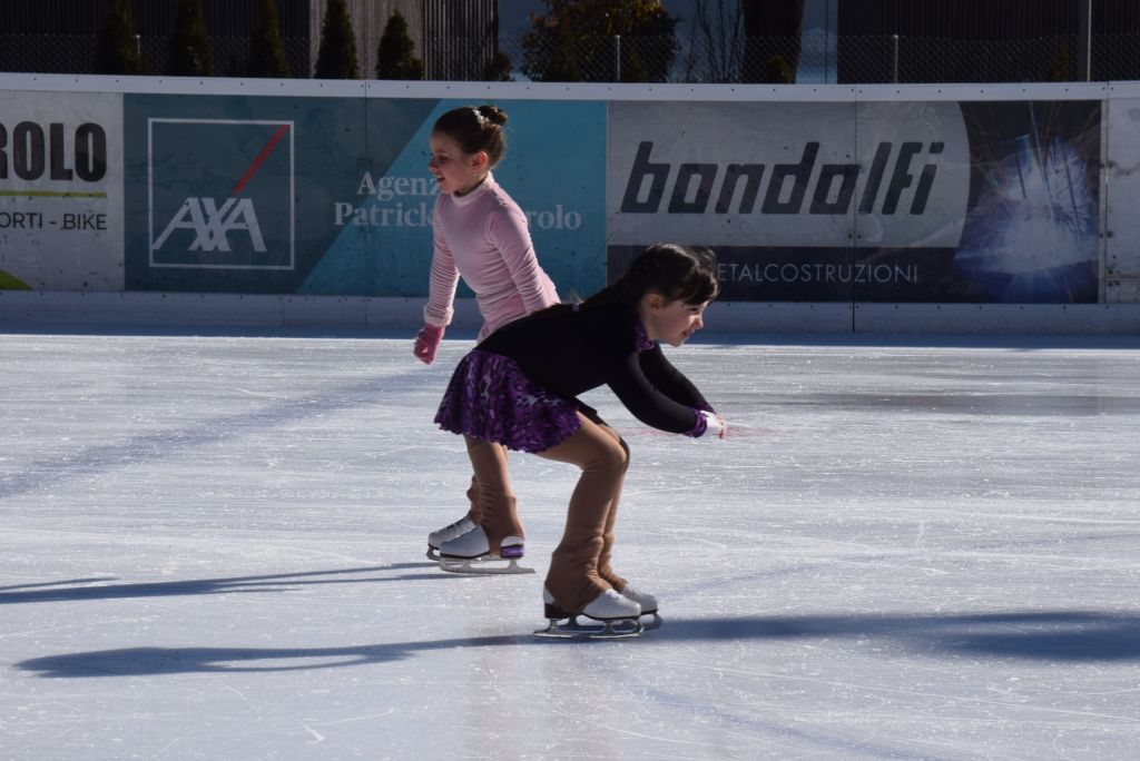 Galleria fotografica del saggio di ieri domenica 19 febbraio 2023 sul campo di ghiaccio a Le Prese intitolato: "art on ice".