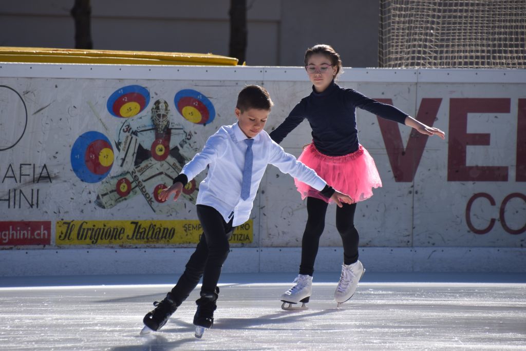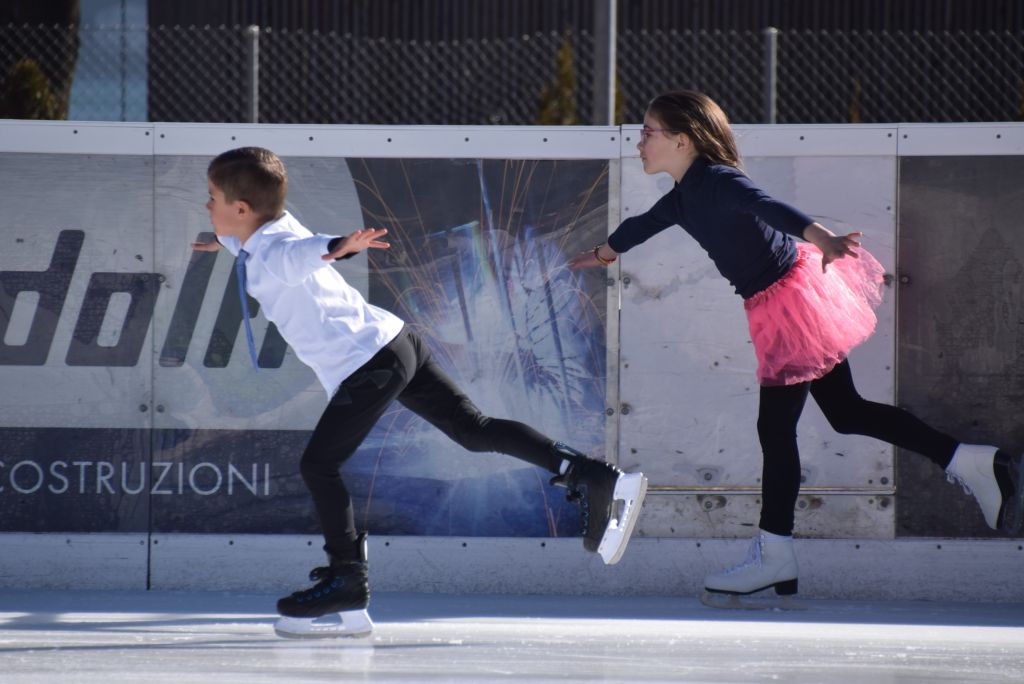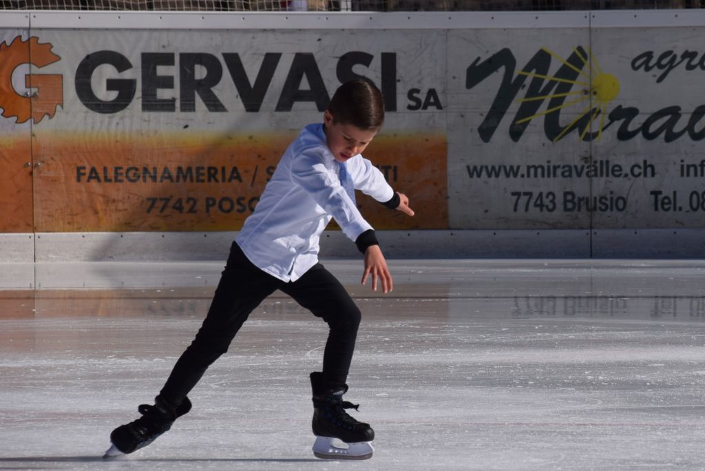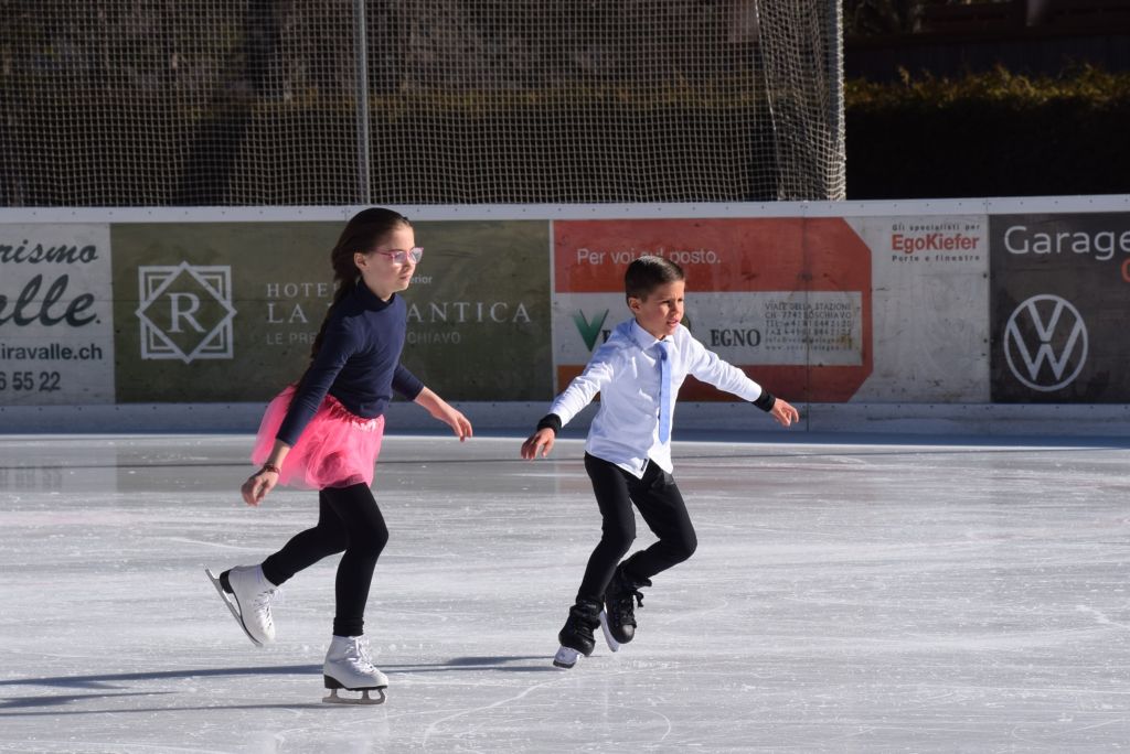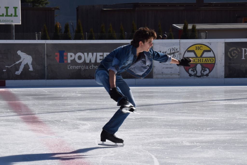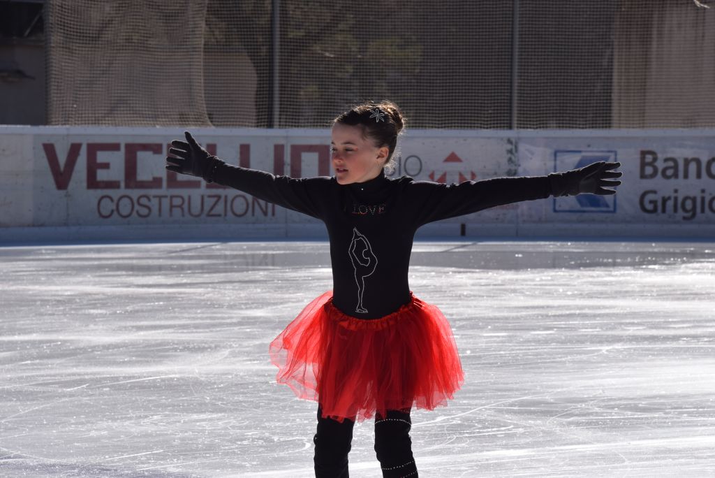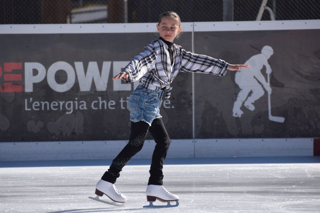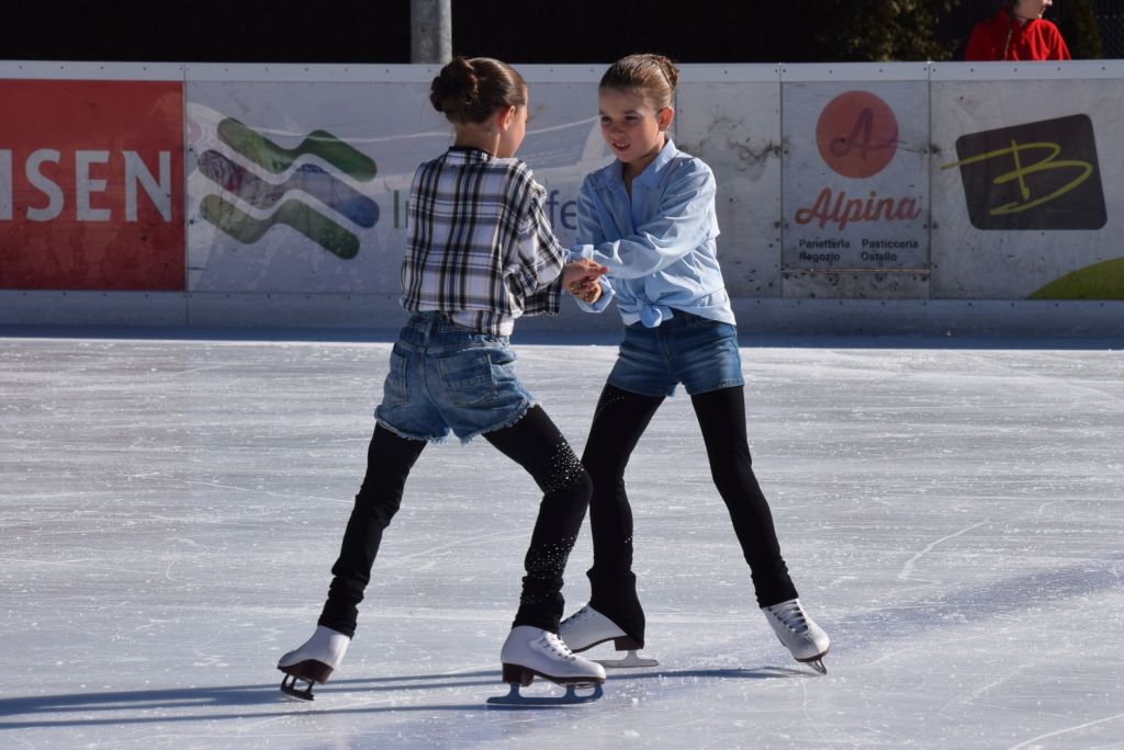 Galleria fotografica del saggio di ieri domenica 19 febbraio 2023 sul campo di ghiaccio a Le Prese intitolato: "art on ice".
