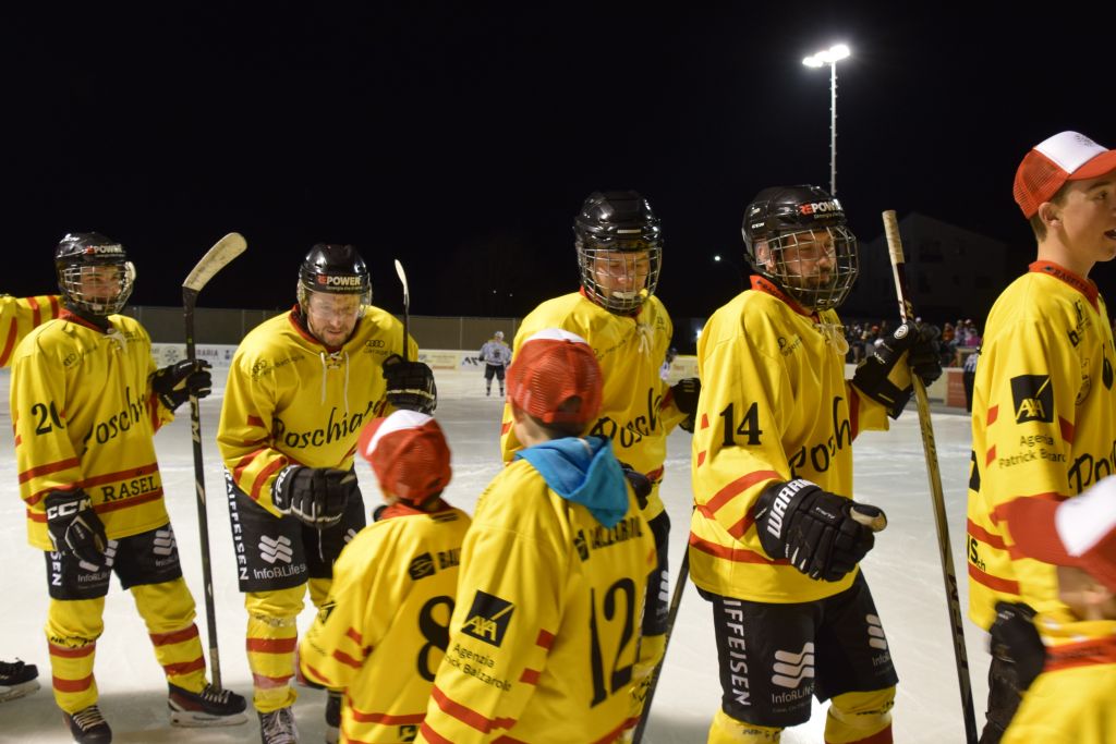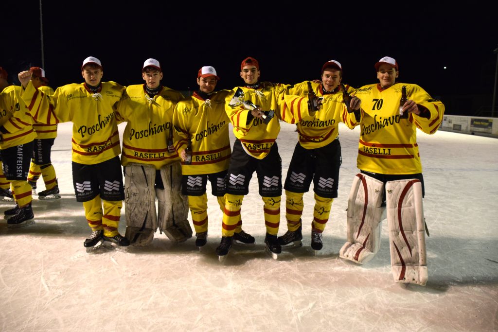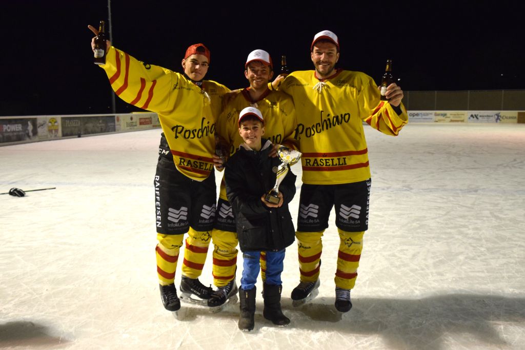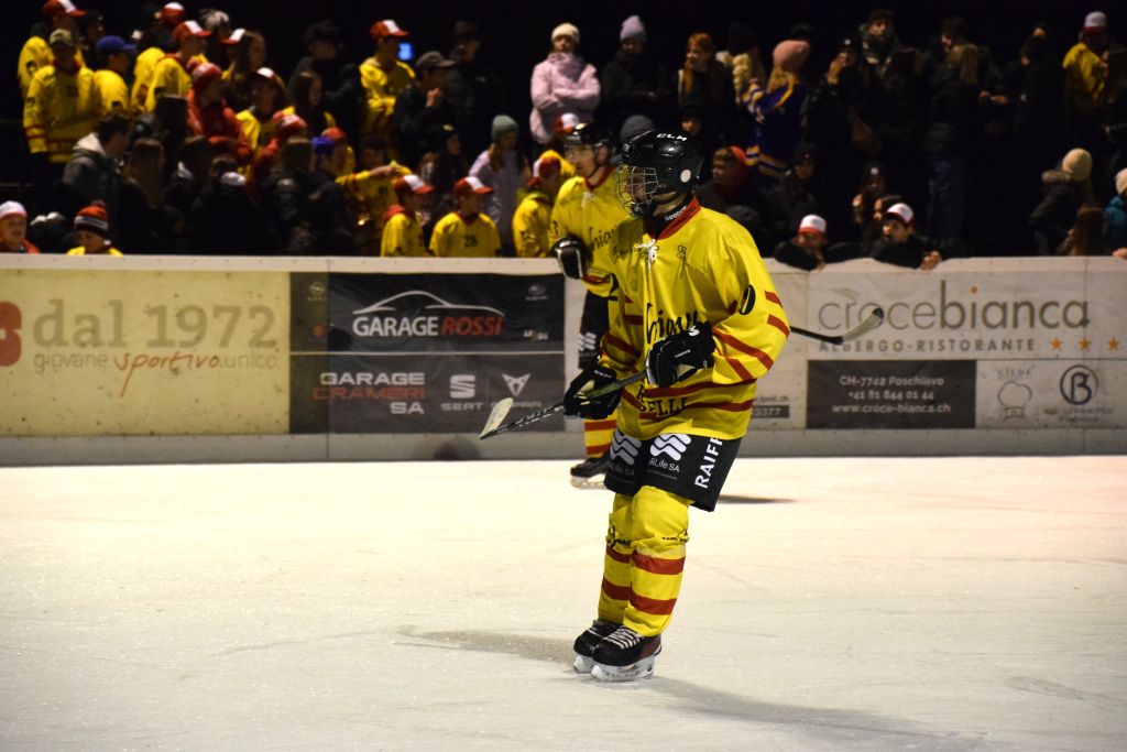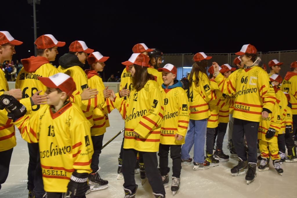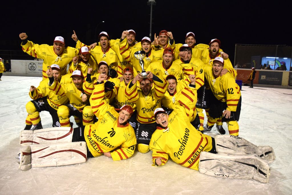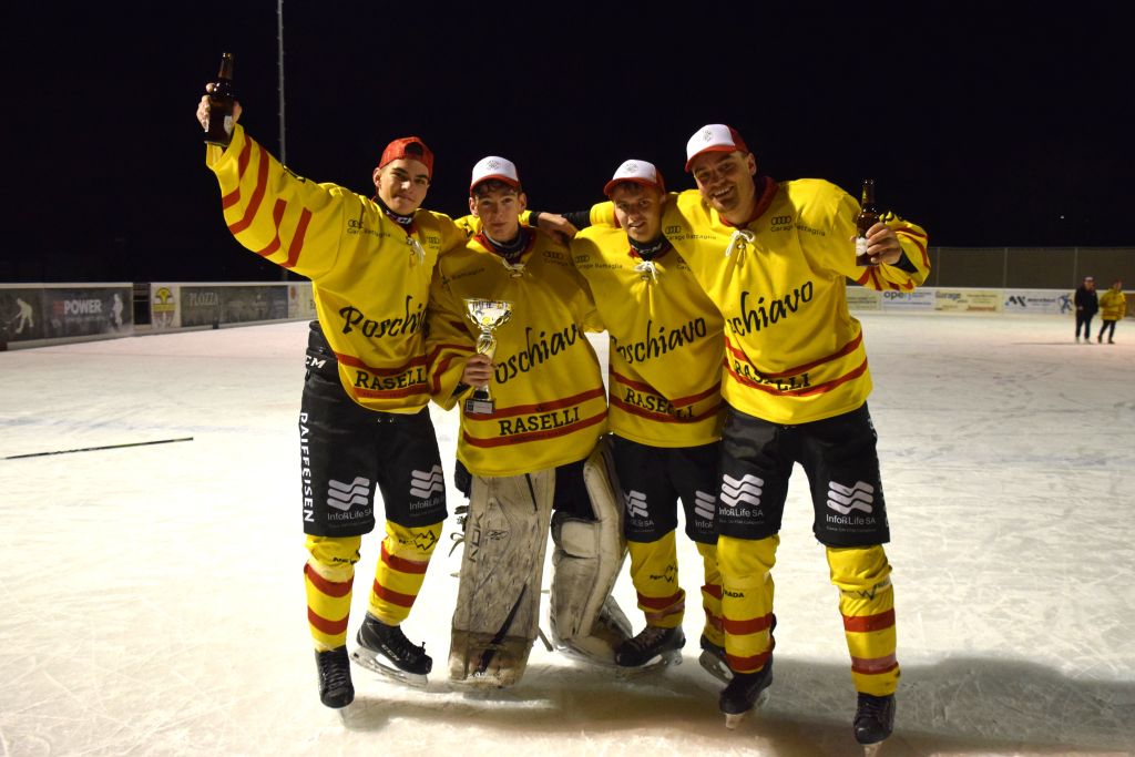 Grandi festeggiamenti al campo di ghiaccio di Le Prese questa sera sabato 17 febbraio 2024 per la conquista del primo posto in campionato dei giocatori dell'HC Poschiavo, vittoria ottenuta già nella terzultima partita di campionato di 3a divisione contro l'EHC Samedan. Numerosissimo il pubblico presente ad incitare i bravissimi giocatori di mister Luca Compagnomi e Fabrizio Raselli.