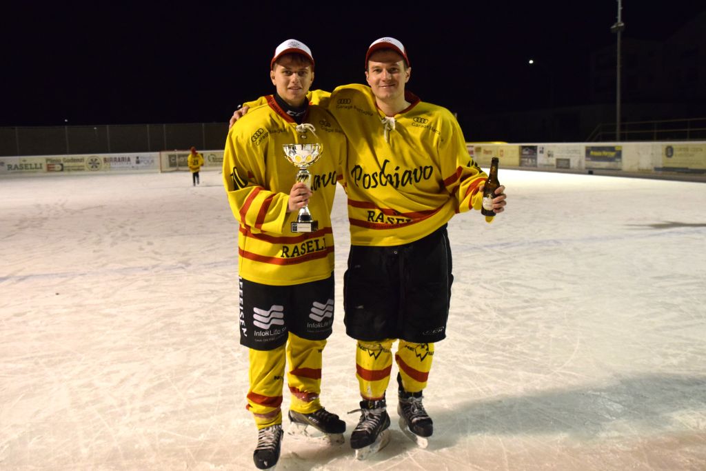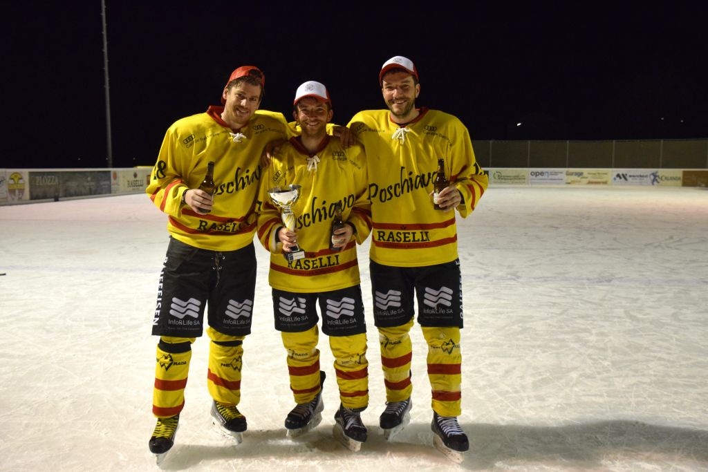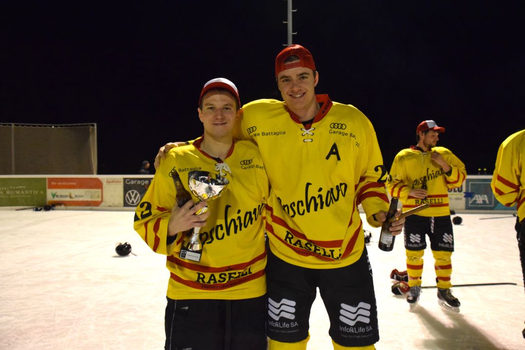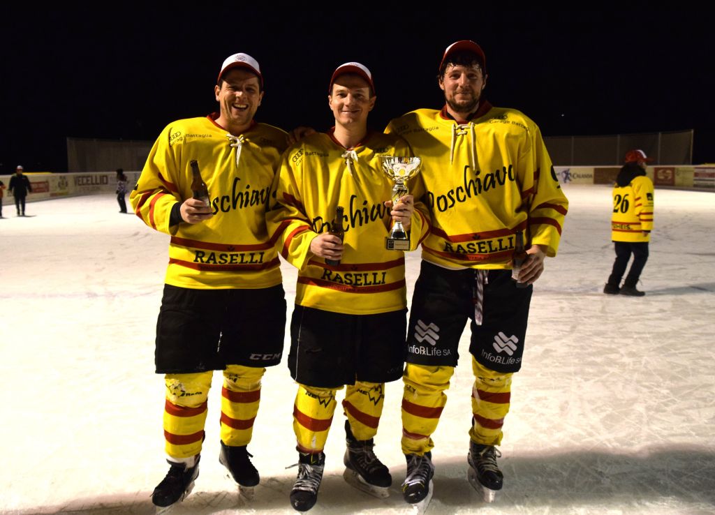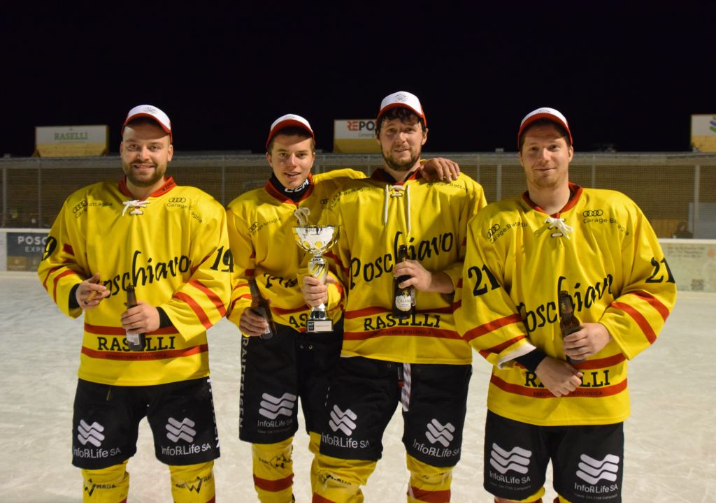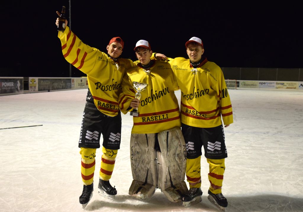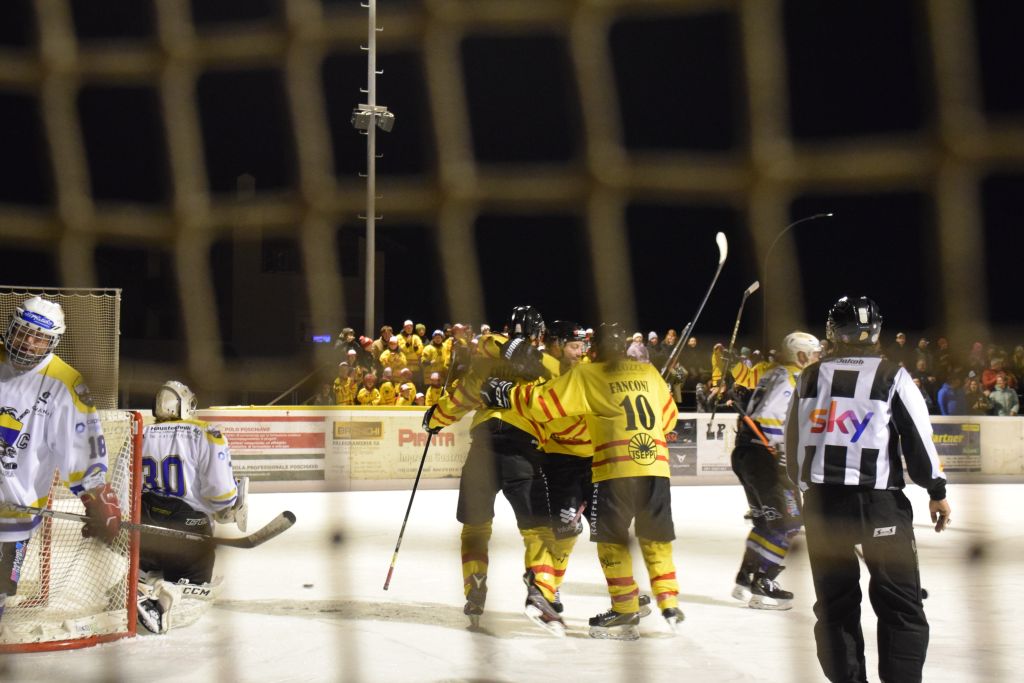 Grandi festeggiamenti al campo di ghiaccio di Le Prese questa sera sabato 17 febbraio 2024 per la conquista del primo posto in campionato dei giocatori dell'HC Poschiavo, vittoria ottenuta già nella terzultima partita di campionato di 3a divisione contro l'EHC Samedan. Numerosissimo il pubblico presente ad incitare i bravissimi giocatori di mister Luca Compagnomi e Fabrizio Raselli.