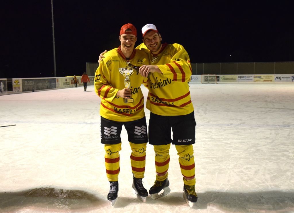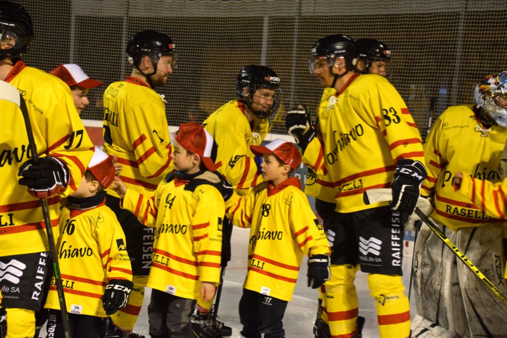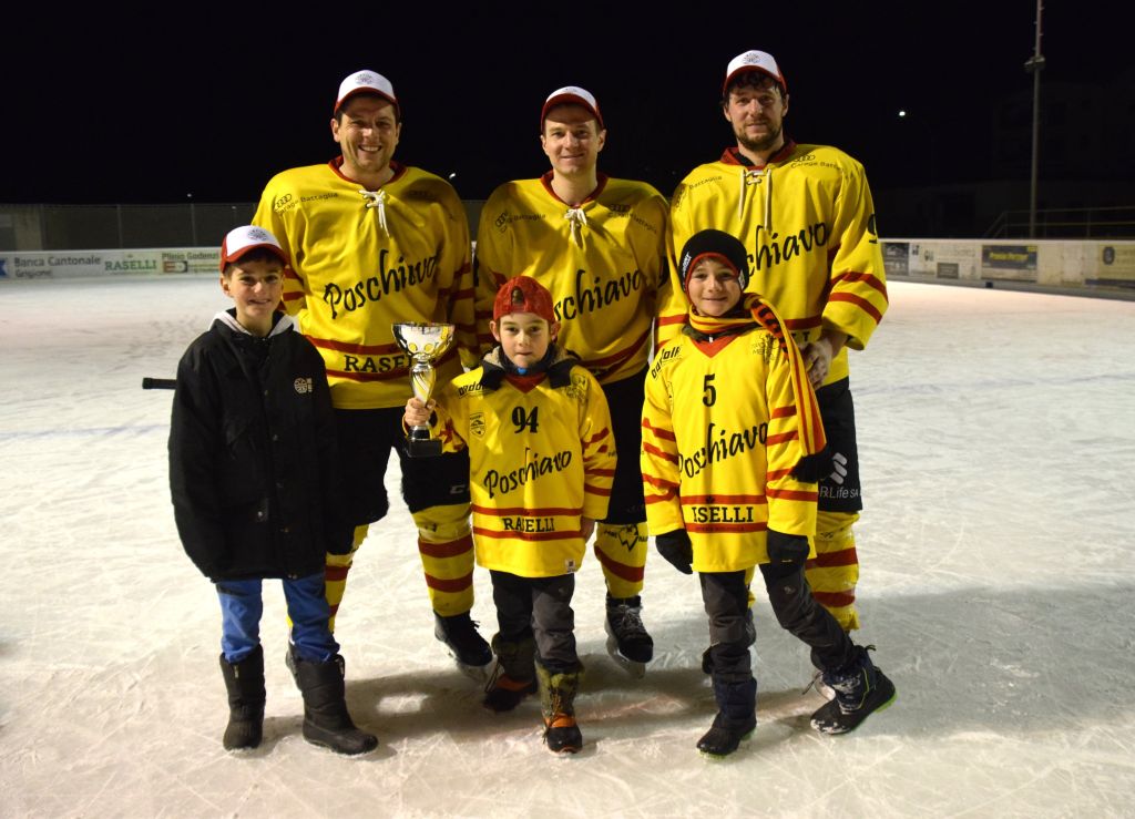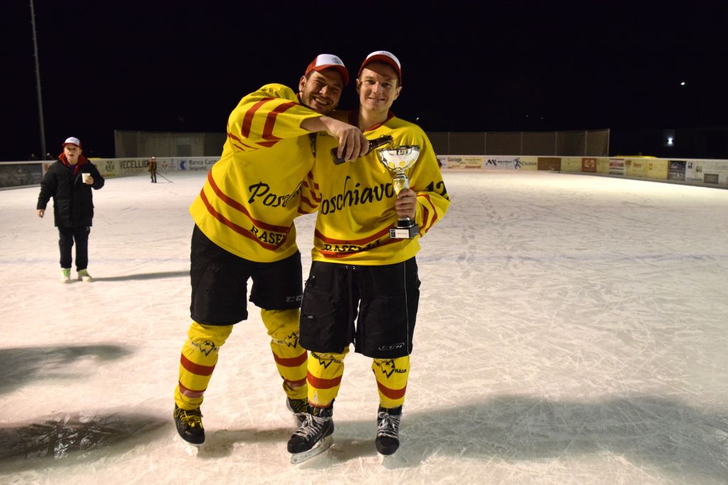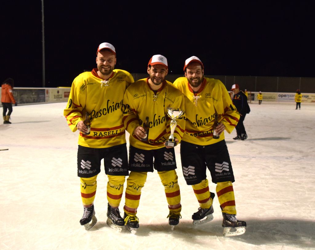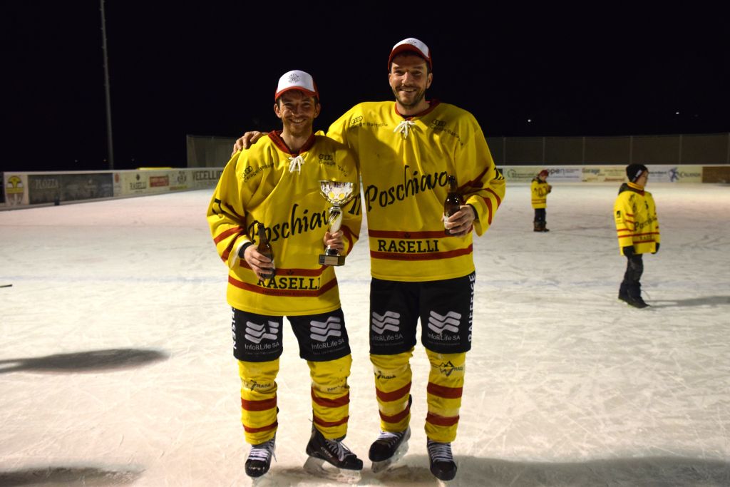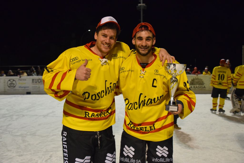 Grandi festeggiamenti al campo di ghiaccio di Le Prese questa sera sabato 17 febbraio 2024 per la conquista del primo posto in campionato dei giocatori dell'HC Poschiavo, vittoria ottenuta già nella terzultima partita di campionato di 3a divisione contro l'EHC Samedan. Numerosissimo il pubblico presente ad incitare i bravissimi giocatori di mister Luca Compagnomi e Fabrizio Raselli.