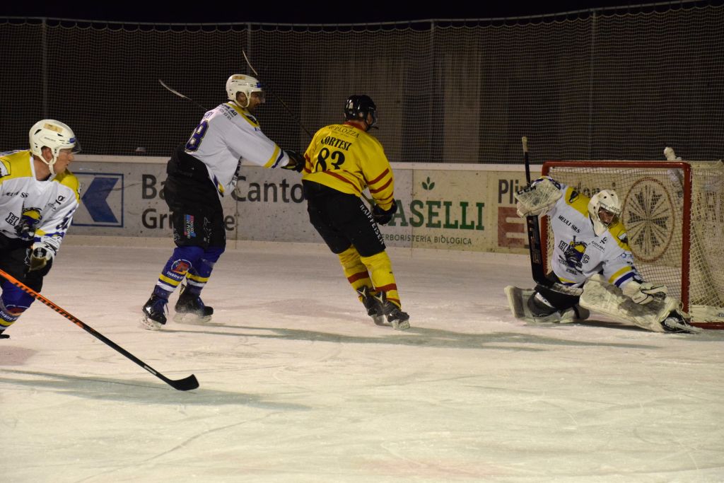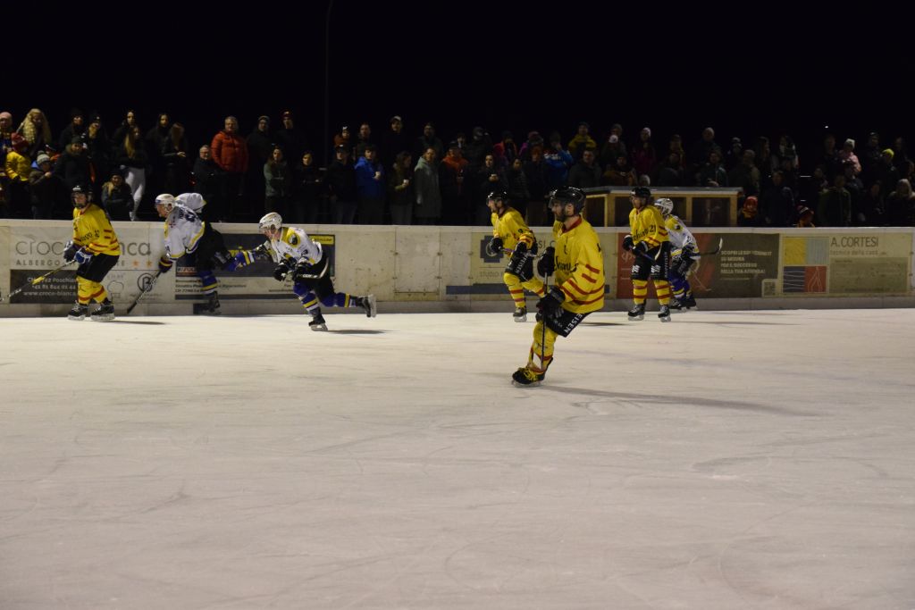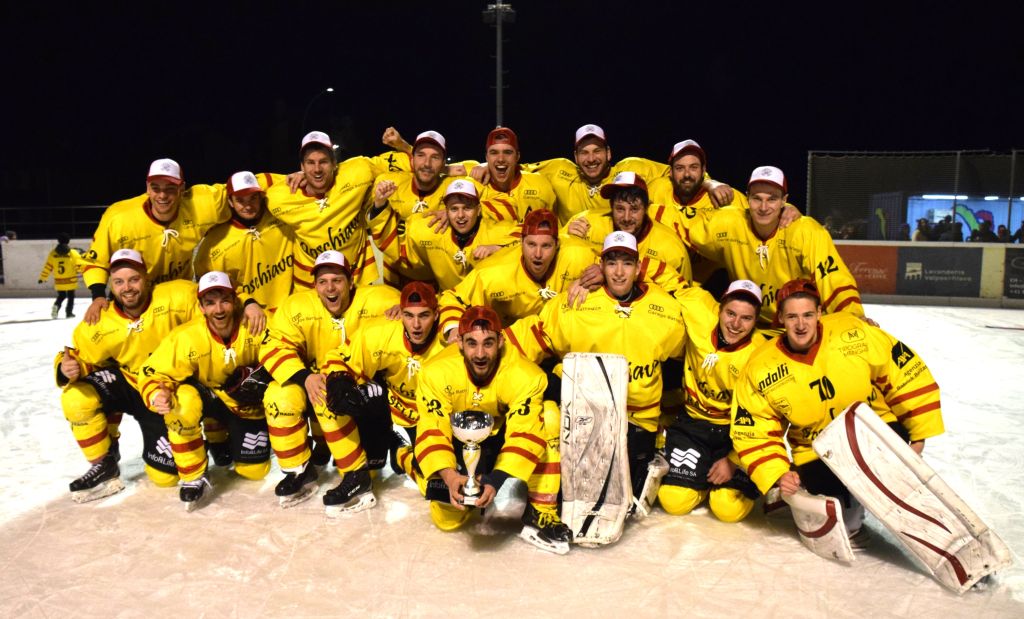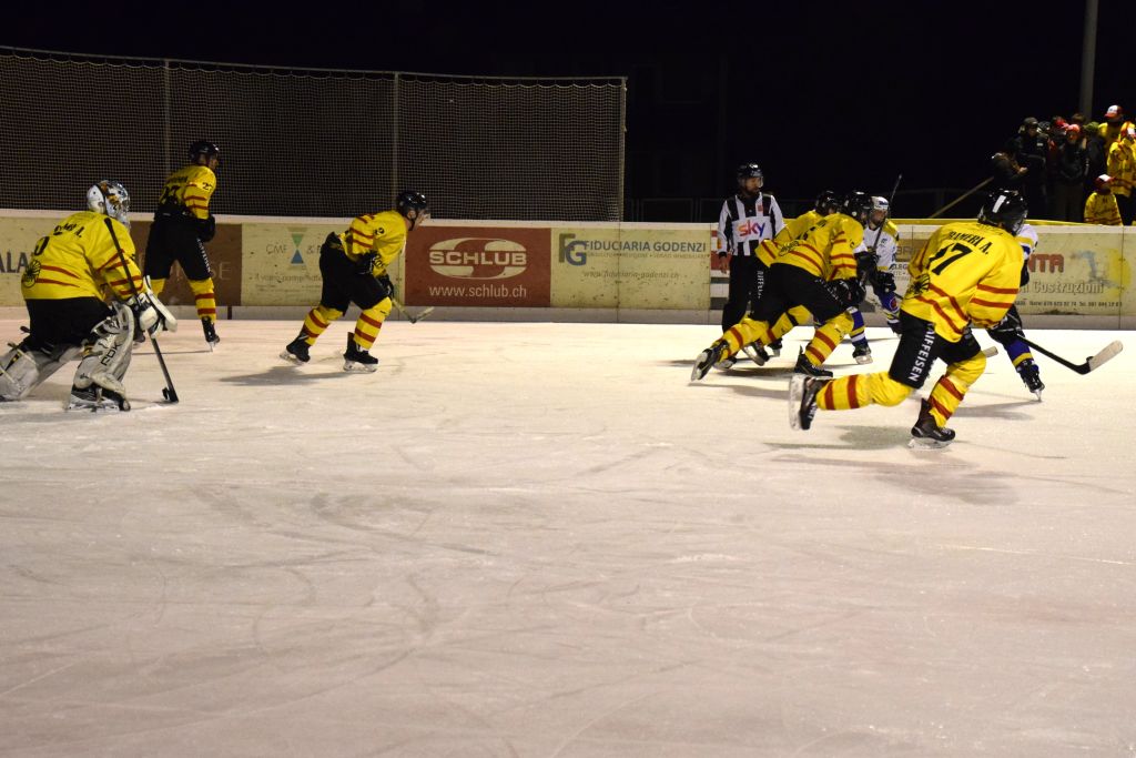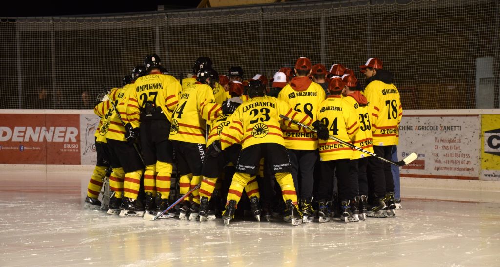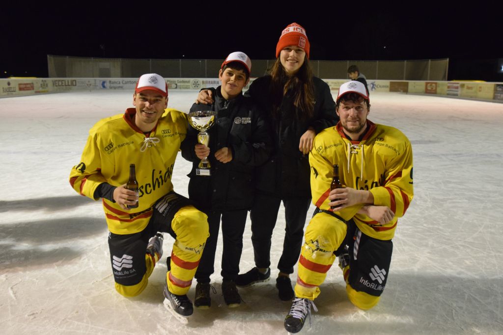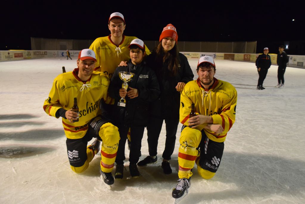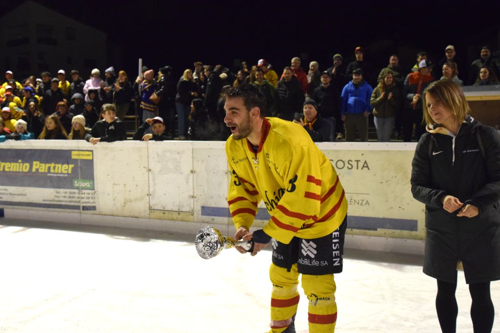 Grandi festeggiamenti al campo di ghiaccio di Le Prese questa sera sabato 17 febbraio 2024 per la conquista del primo posto in campionato dei giocatori dell'HC Poschiavo, vittoria ottenuta già nella terzultima partita di campionato di 3a divisione contro l'EHC Samedan. Numerosissimo il pubblico presente ad incitare i bravissimi giocatori di mister Luca Compagnomi e Fabrizio Raselli.
